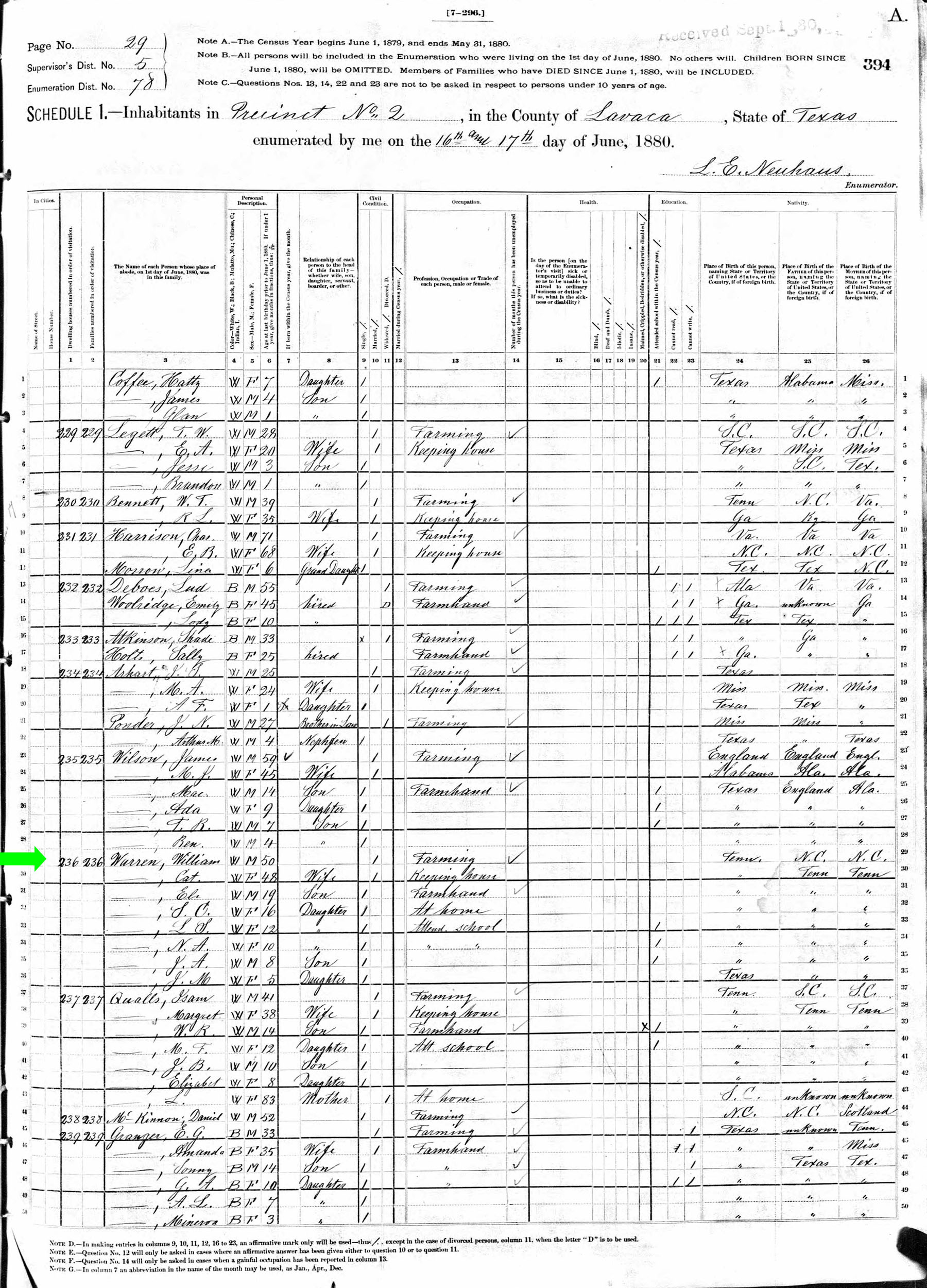 June 1880 in Lavaca Co., Texas
