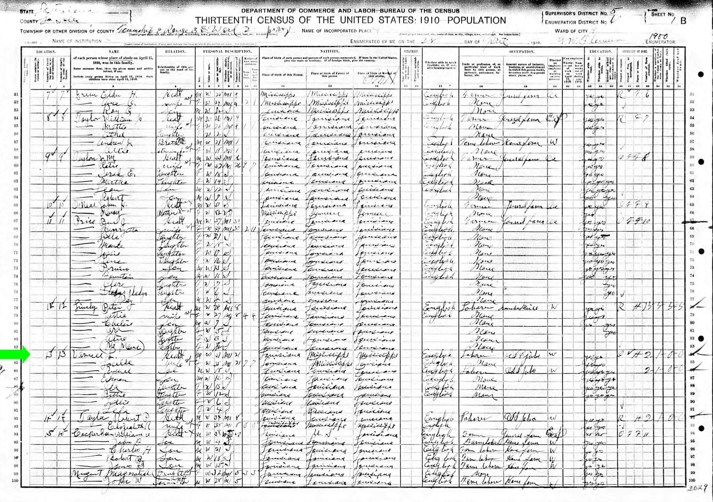 April 1910 in La Salle Co., Louisiana