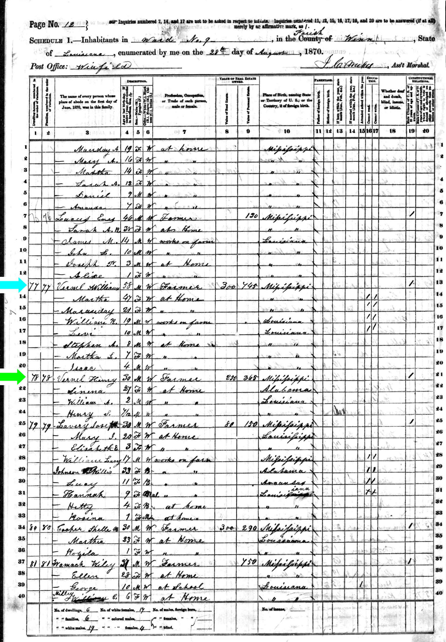 August 1870 in Winn Co., Louisiana