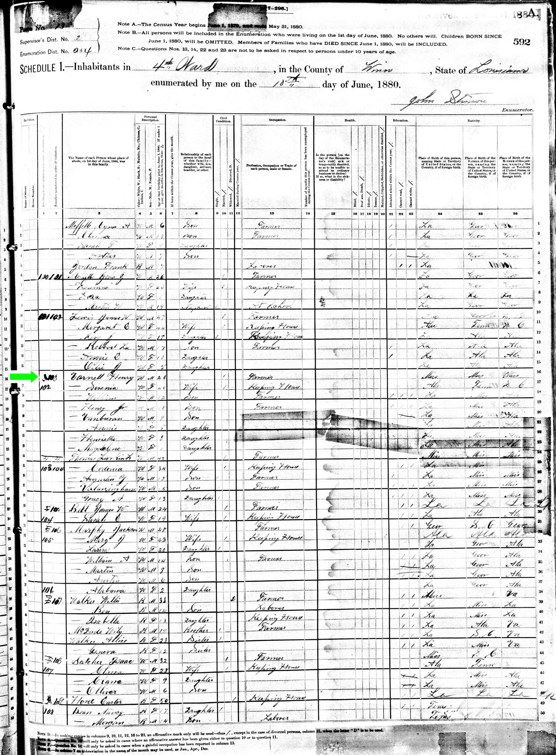June 1880 in Winn Co., Louisiana