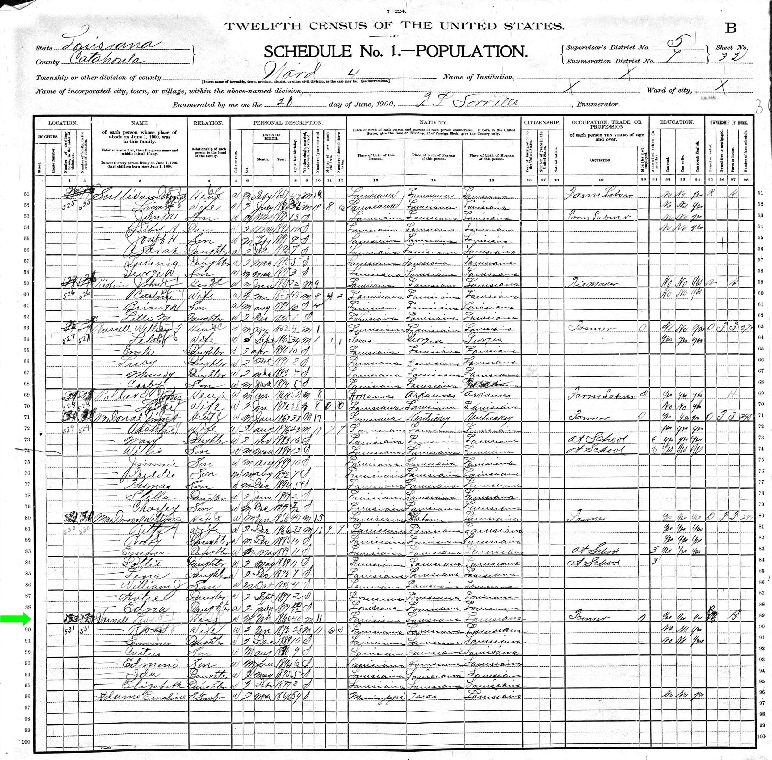 June 1900 in Catahoula Co., Louisiana