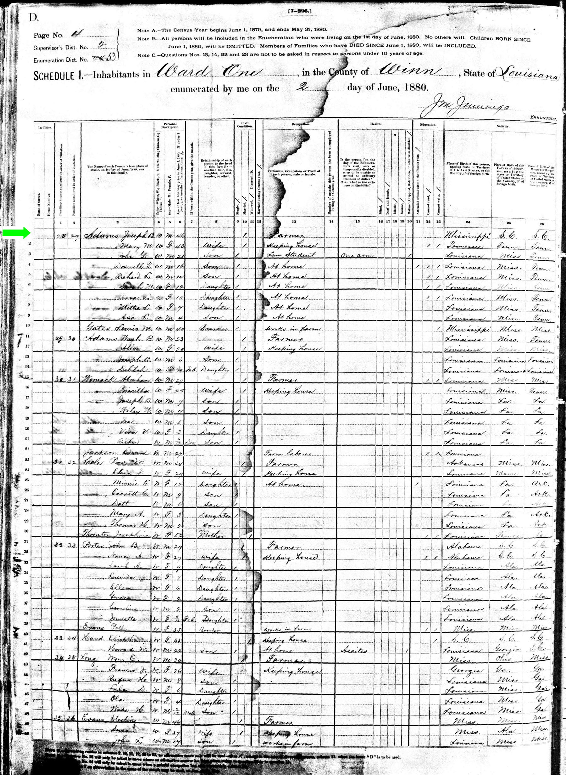 June 1880 in Winn Co., Louisiana