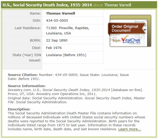 February 14, 1976 in Louisiana; Probably