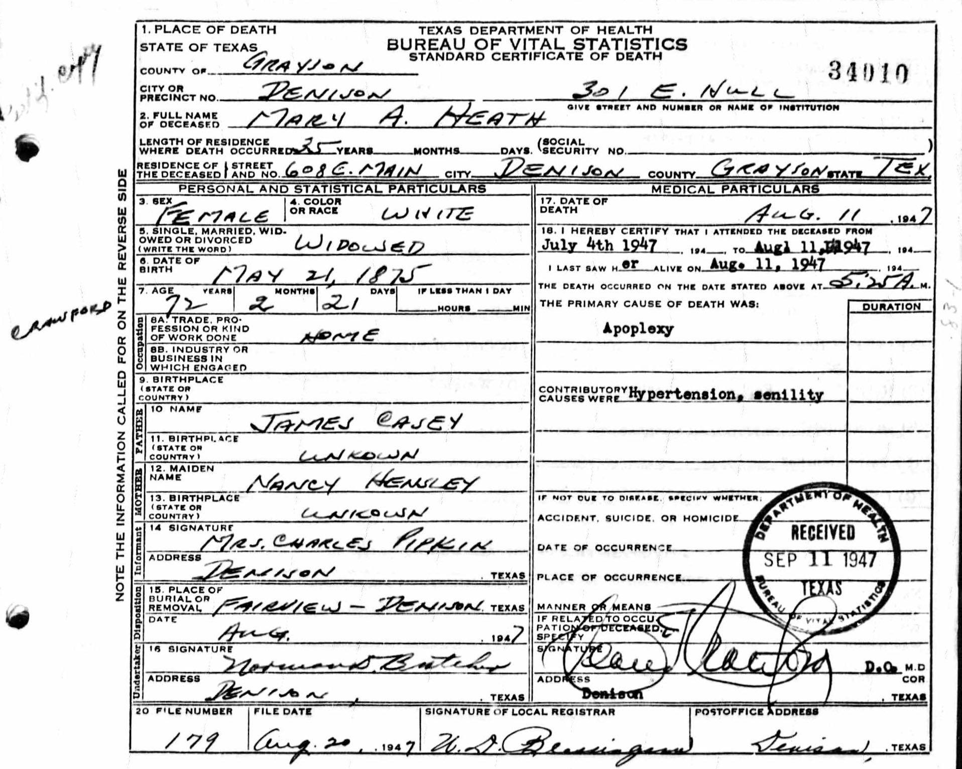 August 11, 1947 in Denison, Texas; 301 E. Hull