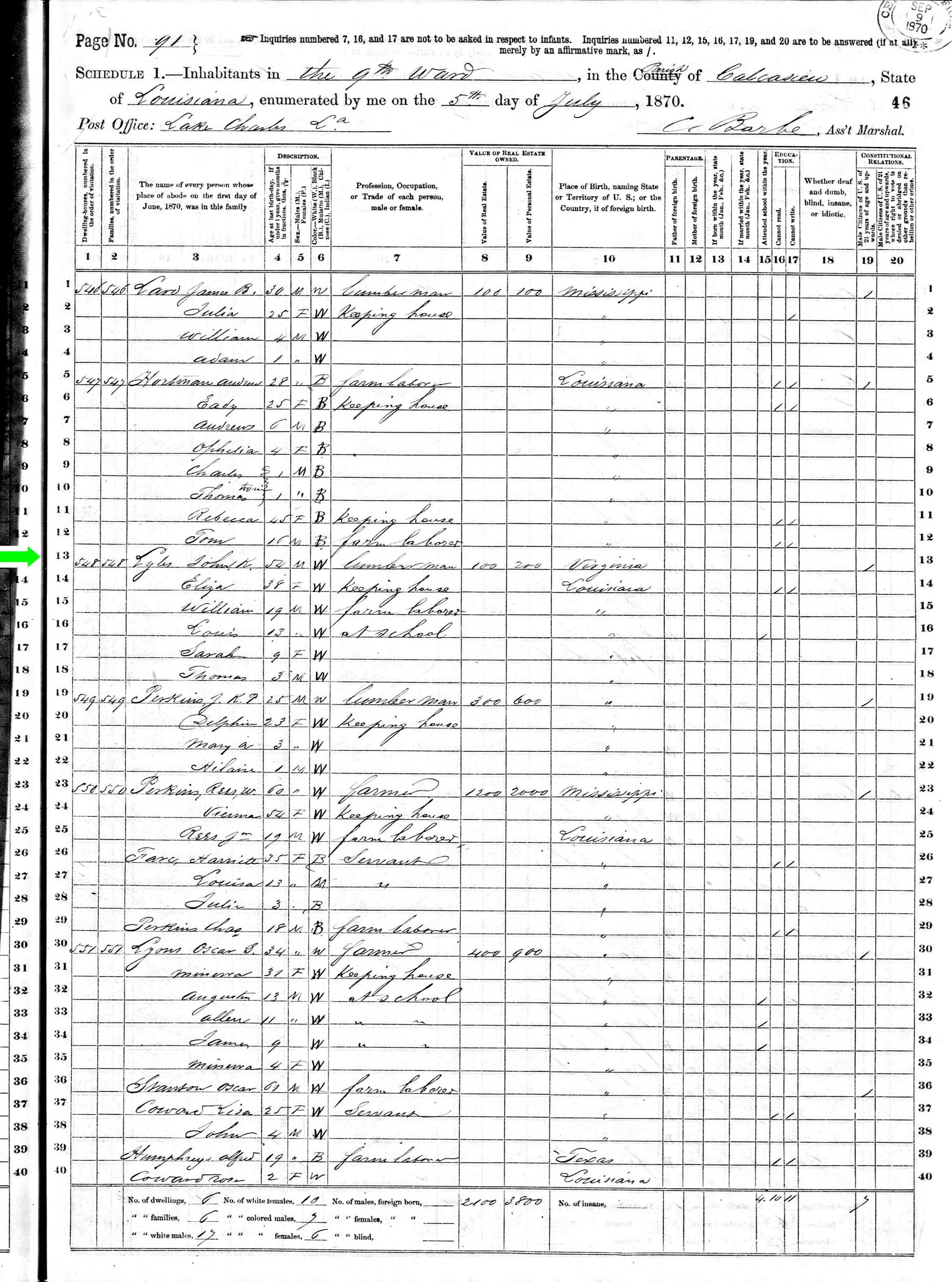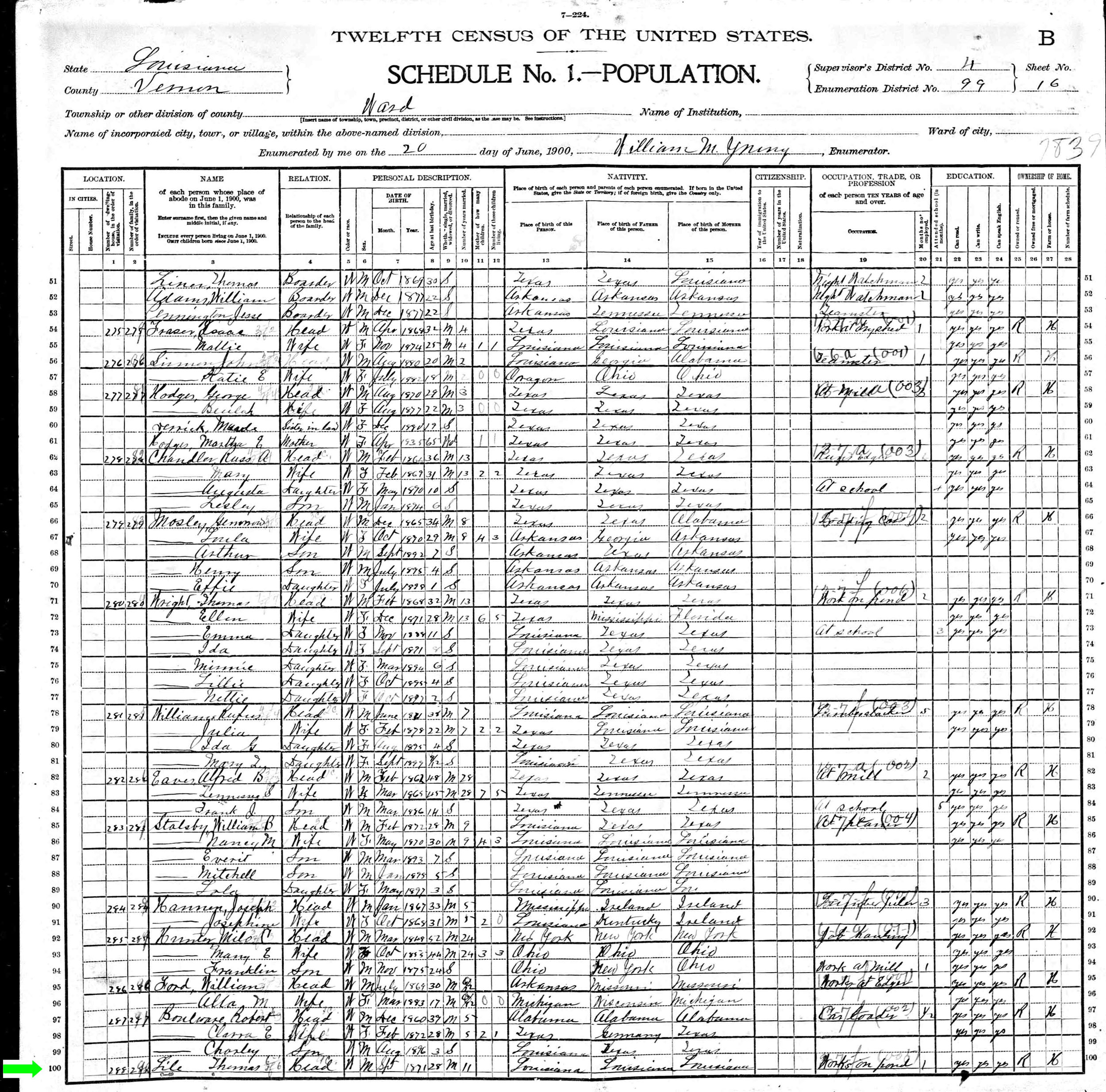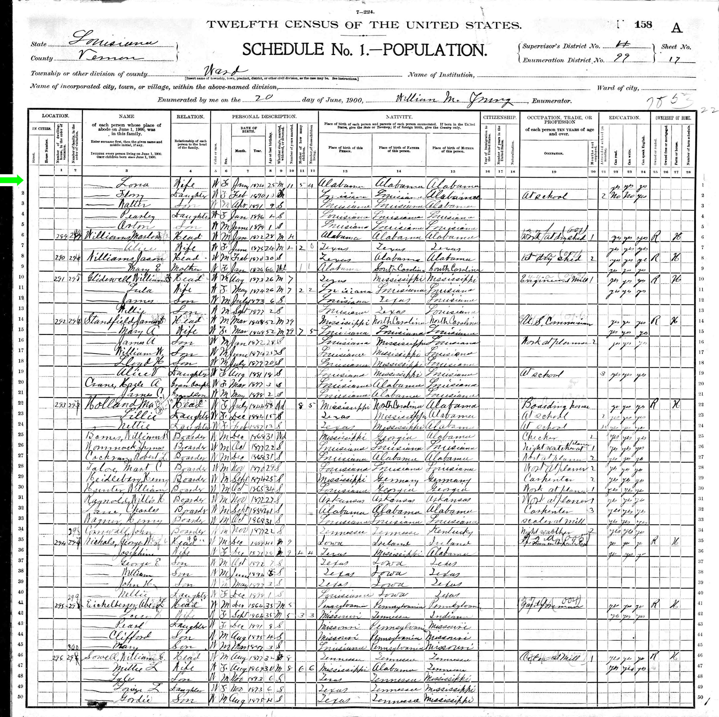 April 1910 in Carson, Louisiana; At the time of the census, Carson was in Calcasieu Parish.