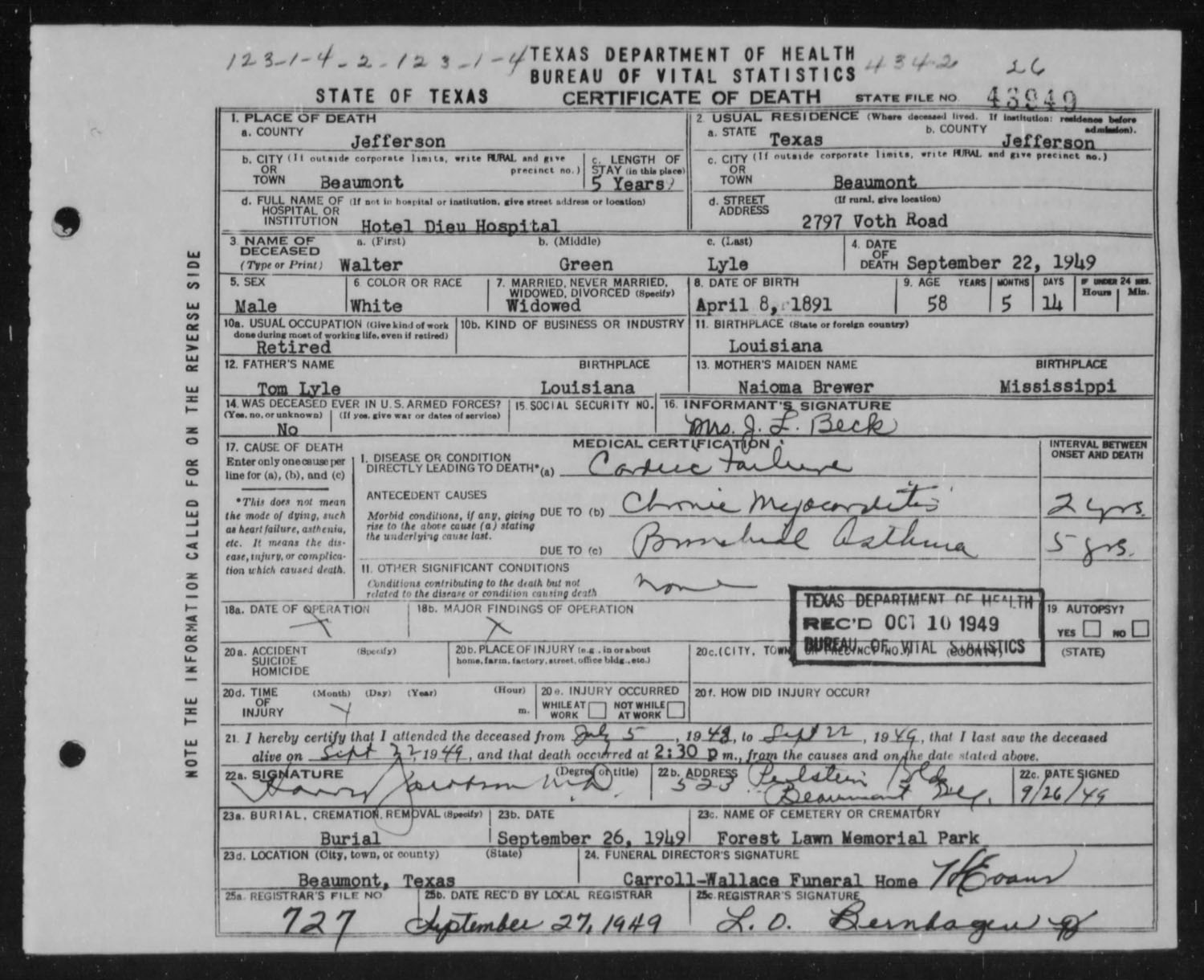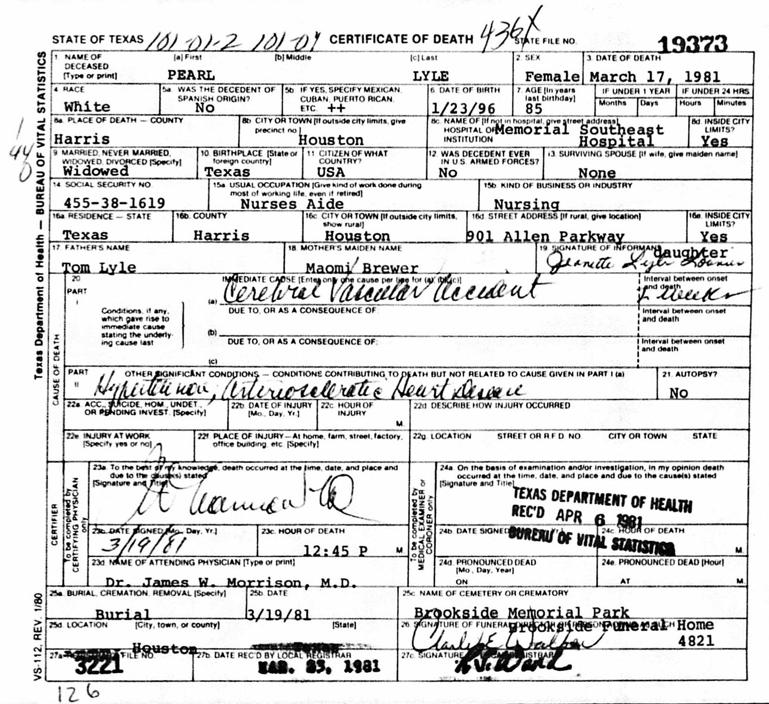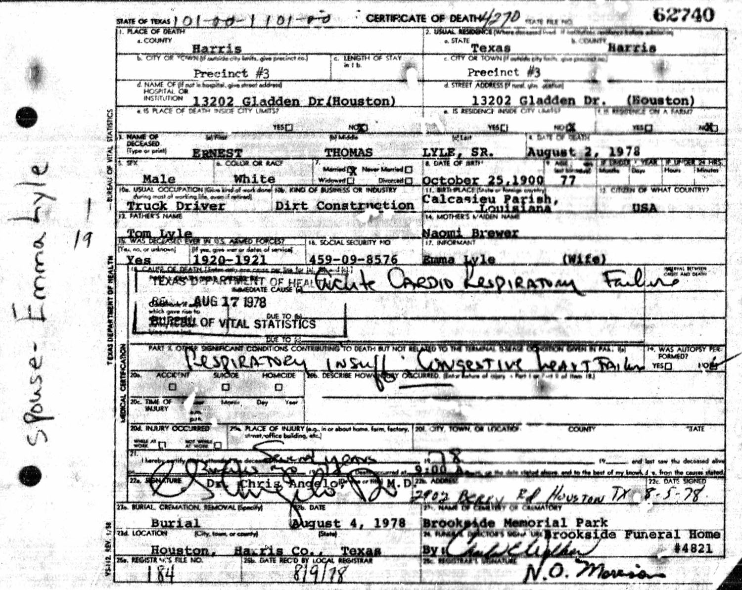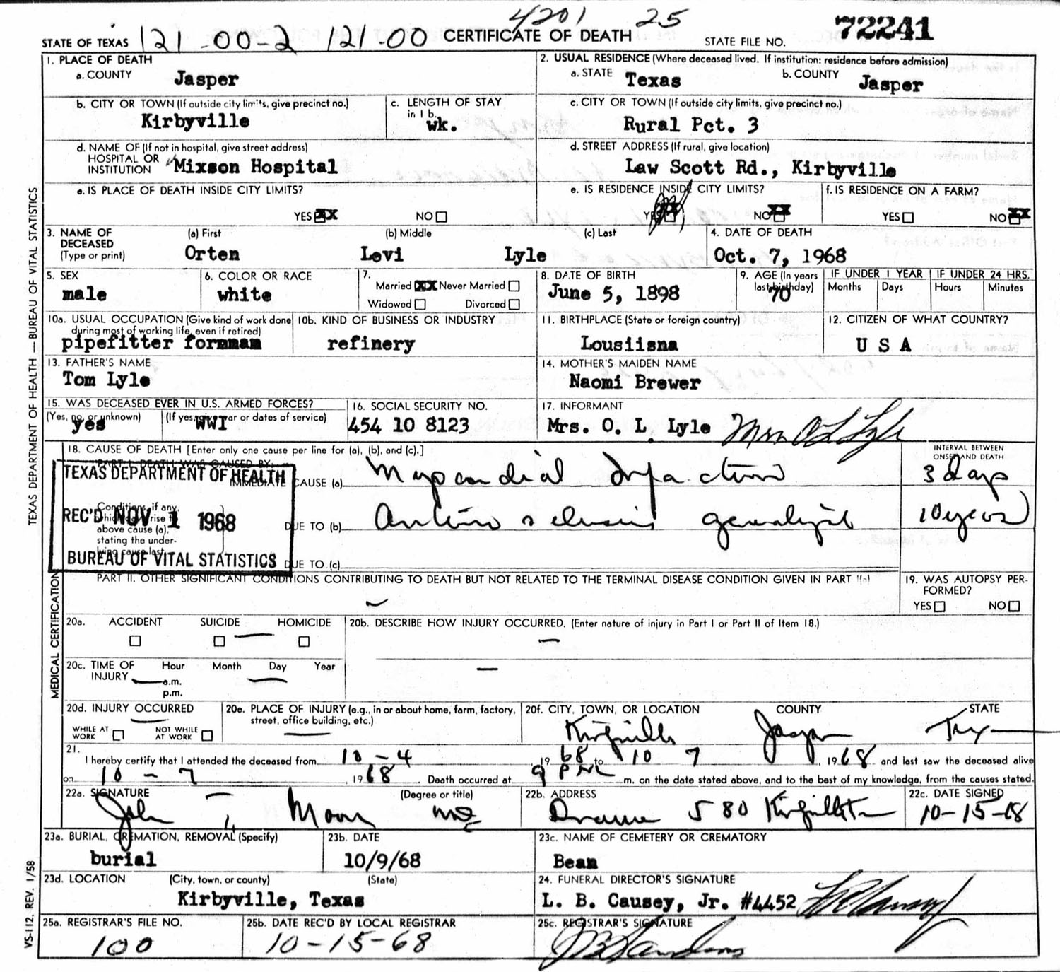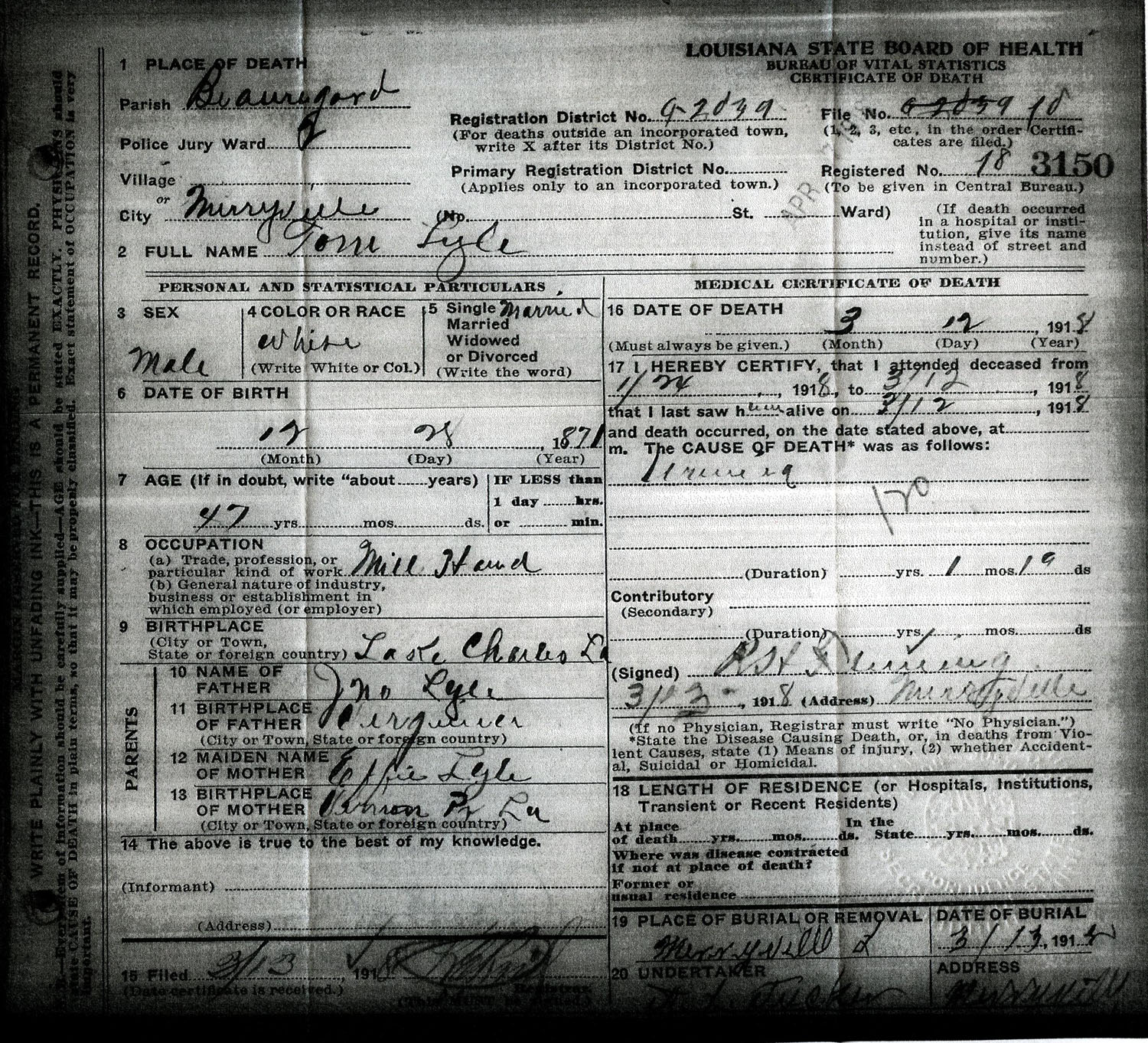 March 13, 1918 in Merryville, Louisiana; Merryville Cemetery