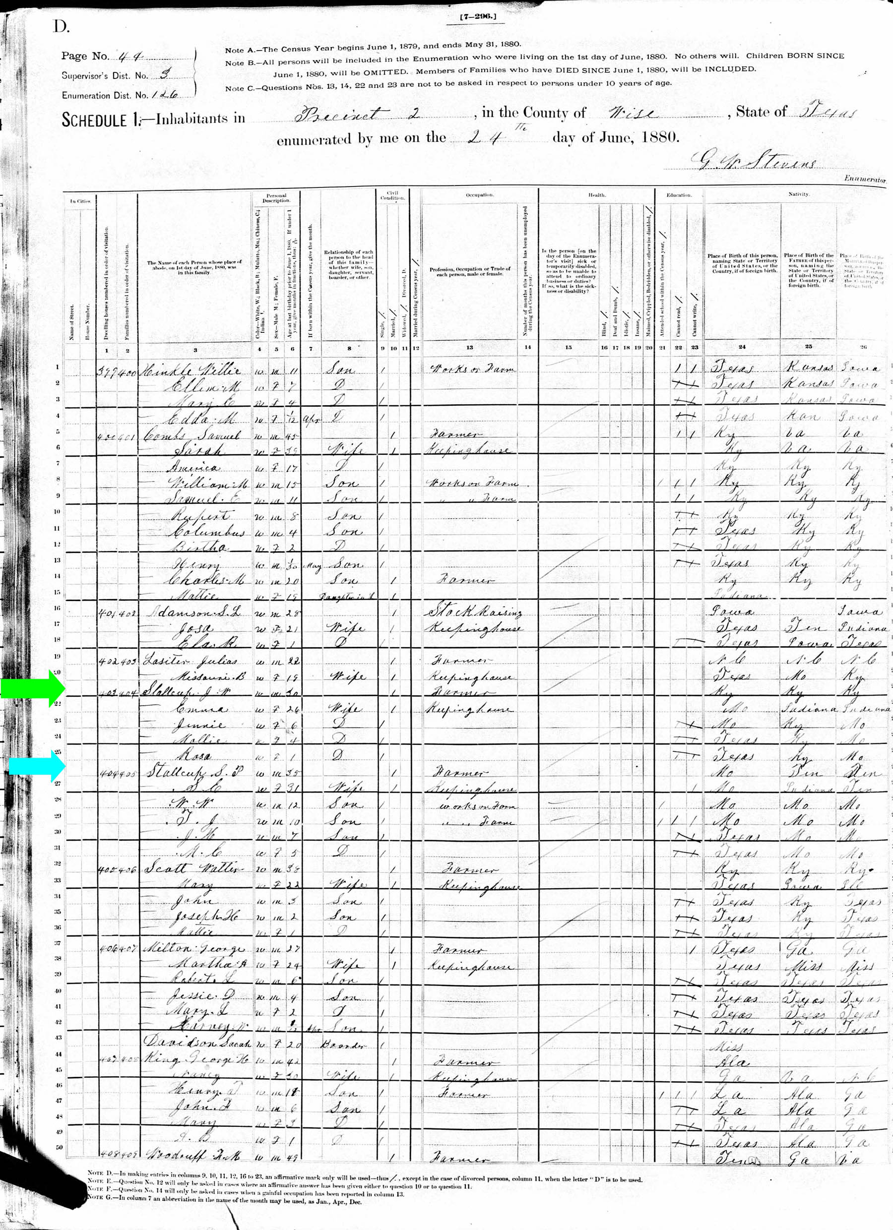 June 1880 in Wise Co., Texas