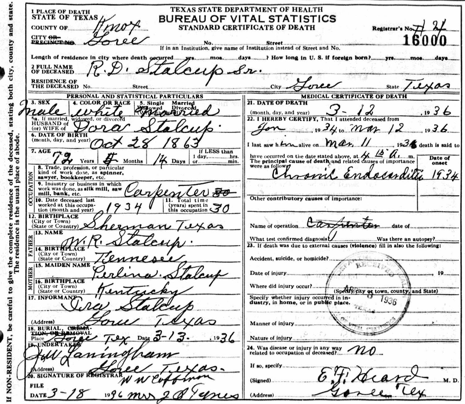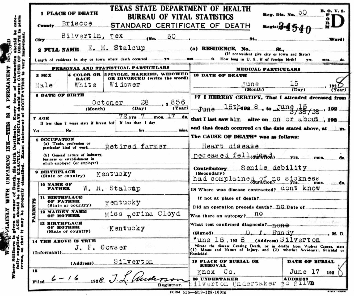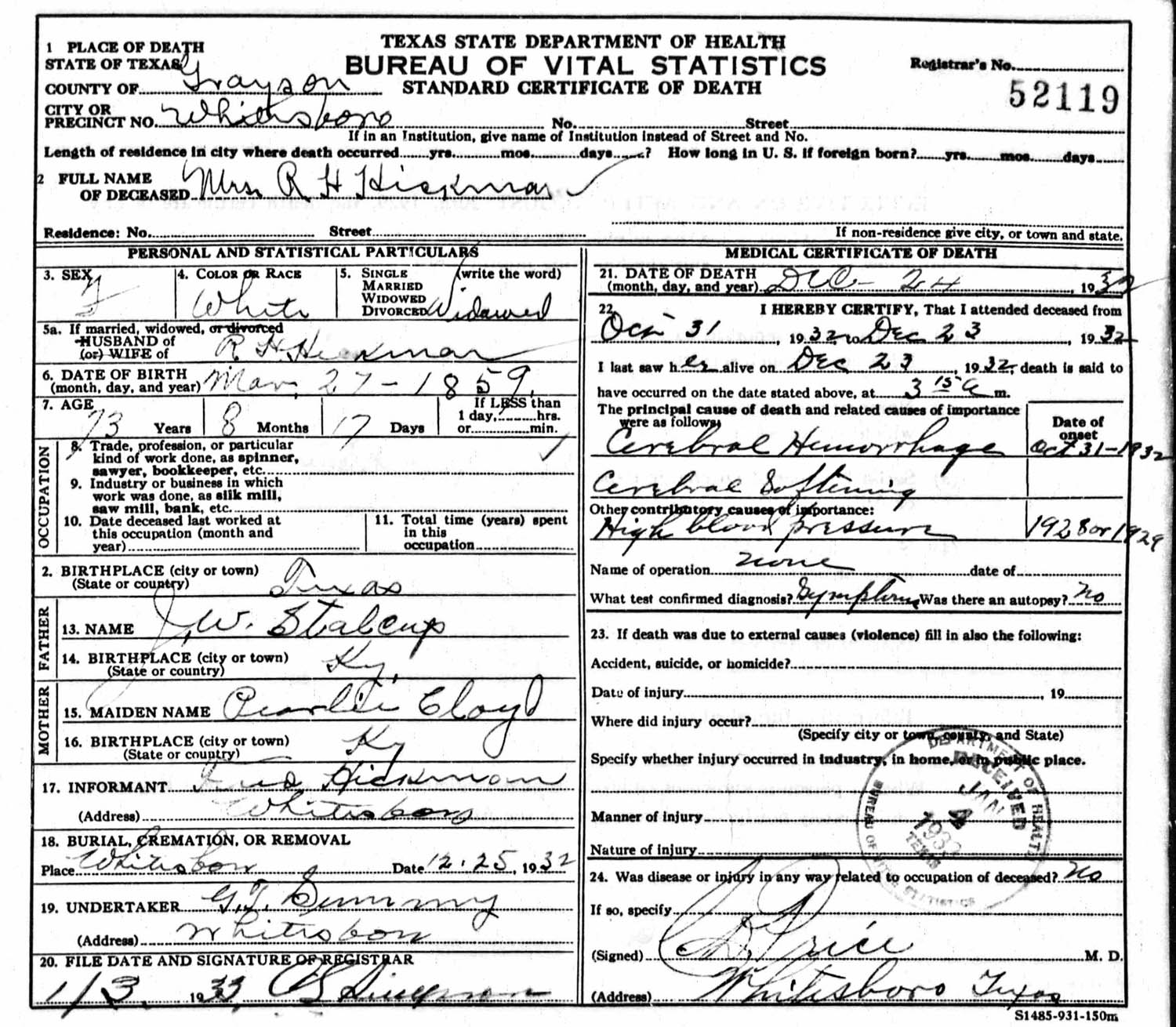 July 1905 in Whitesboro, Texas; Oak Wood Cemetery