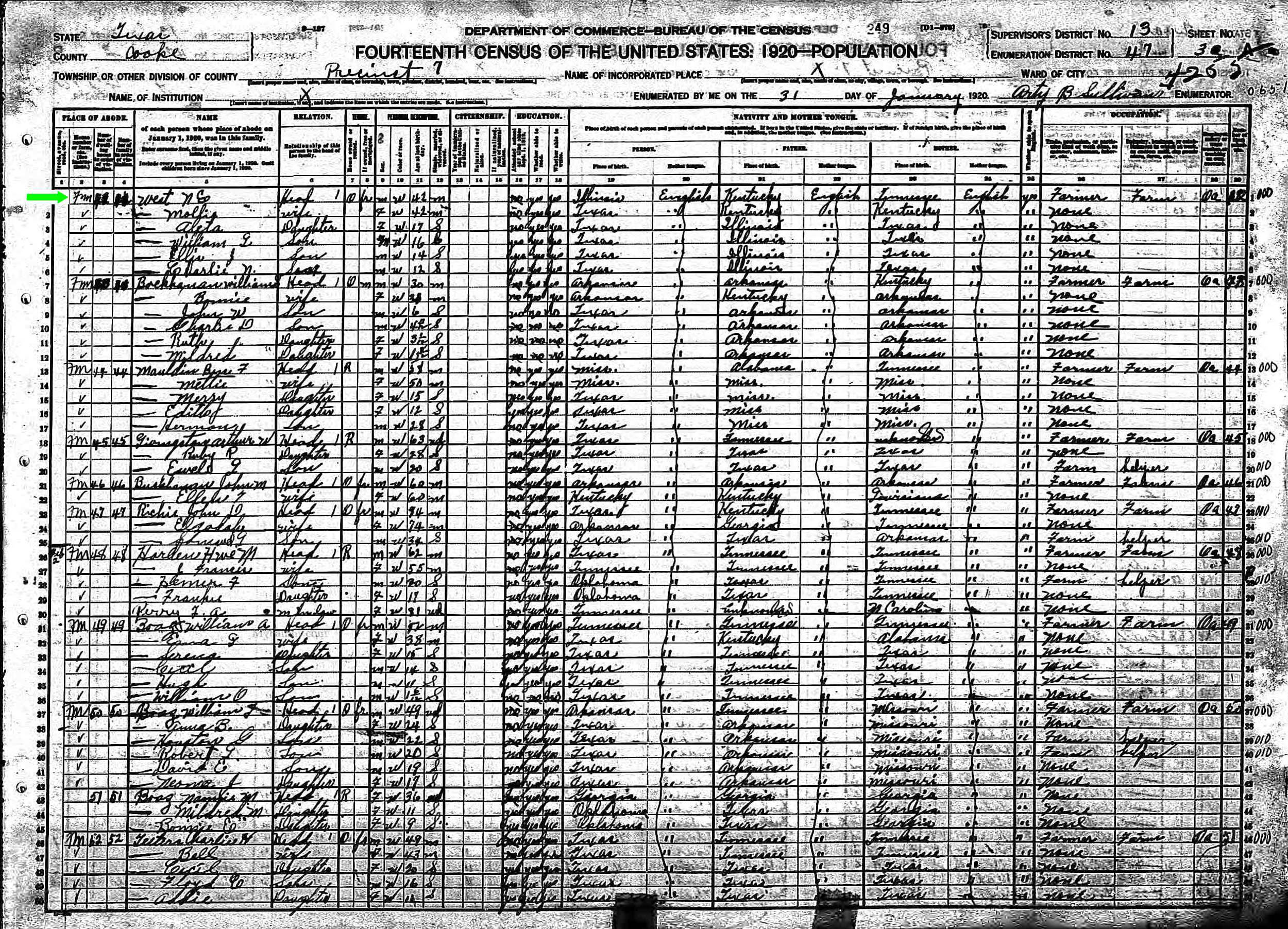 January 1920 in Cooke Co., Texas