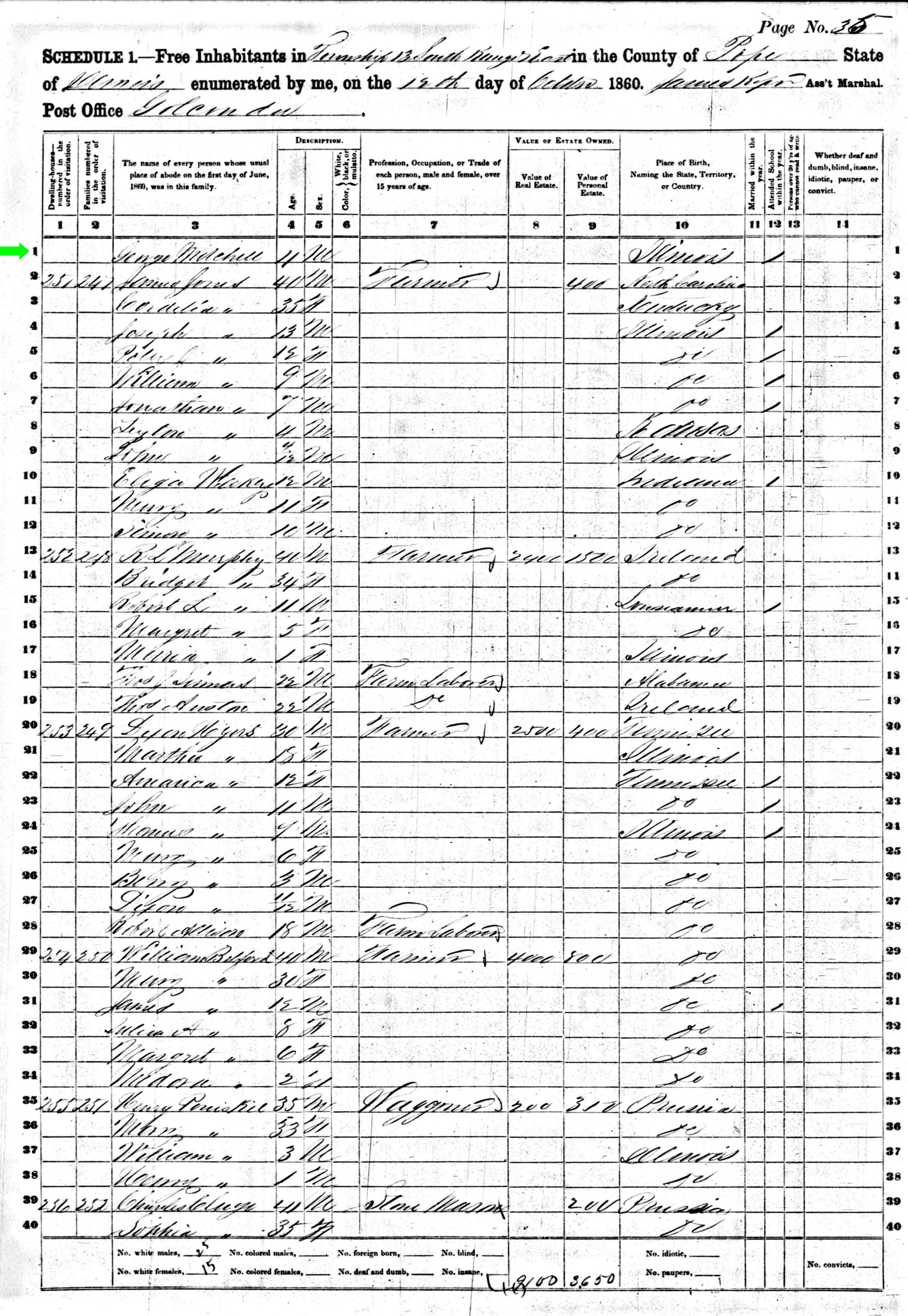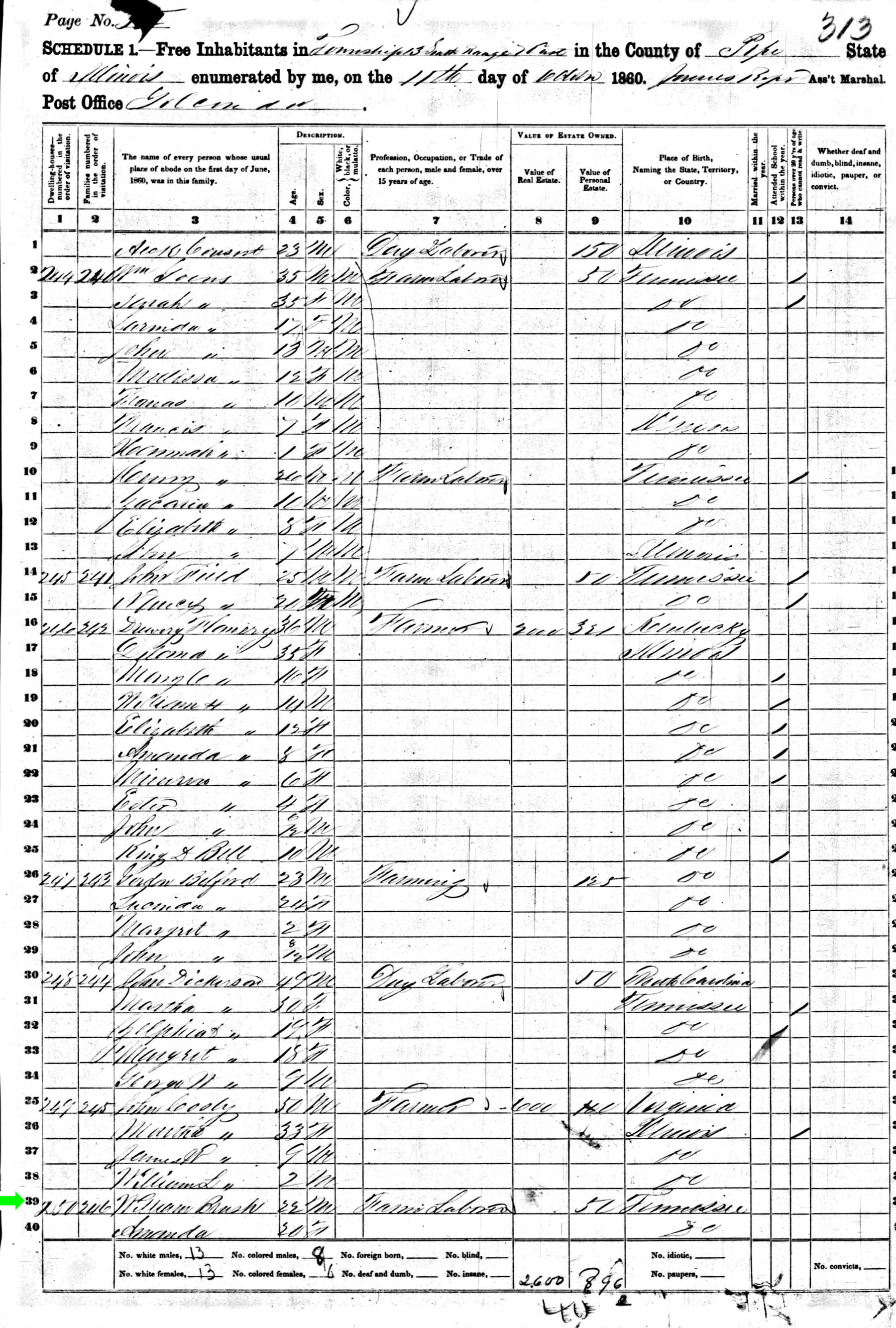 October 1860 in Pope Co., Illinois