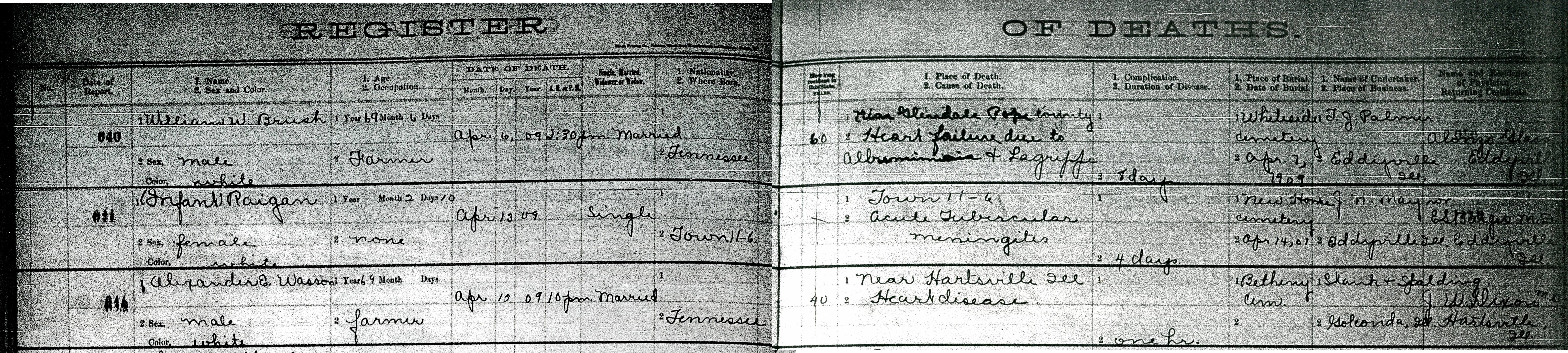 April 07, 1909 in Eddyville, Illinois; Whiteside Cemetery