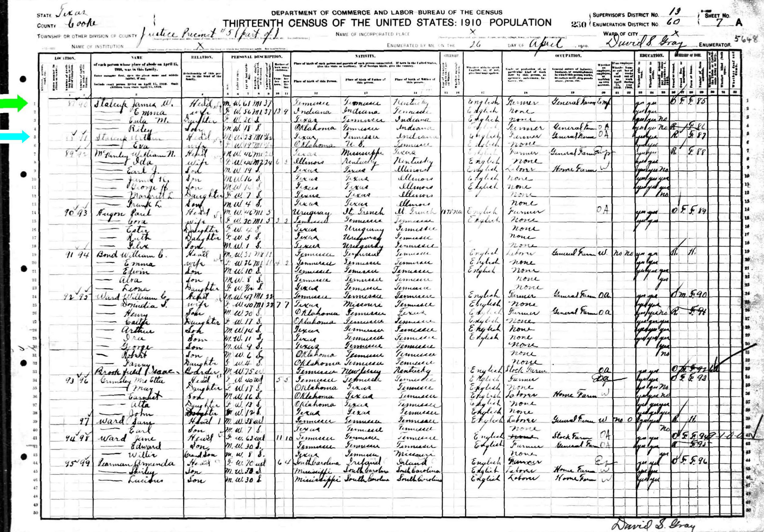 April 1910 in Cooke Co., Texas