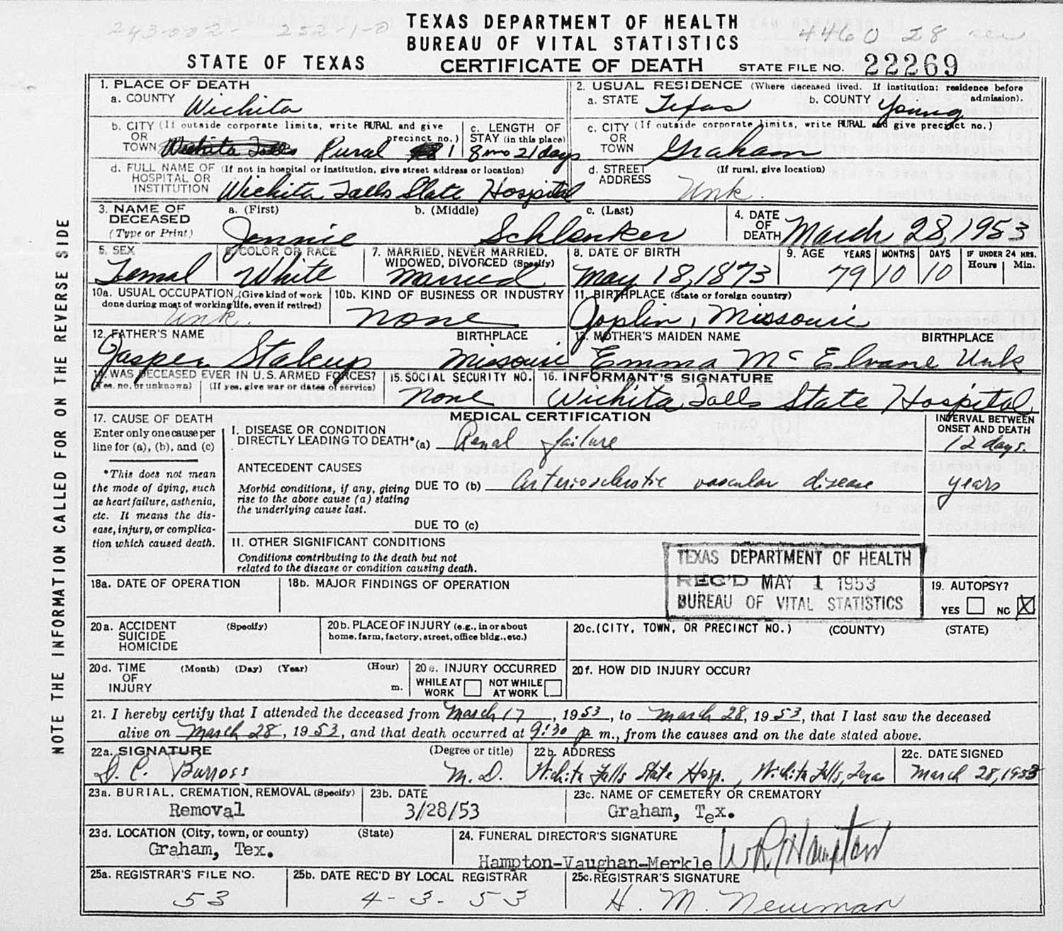 March 1930 in Whitesboro, Texas; Oak Wood Cemetery