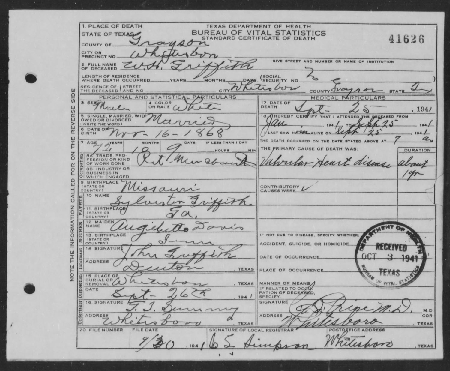 Sylvester Griffith (1845 - 1875)