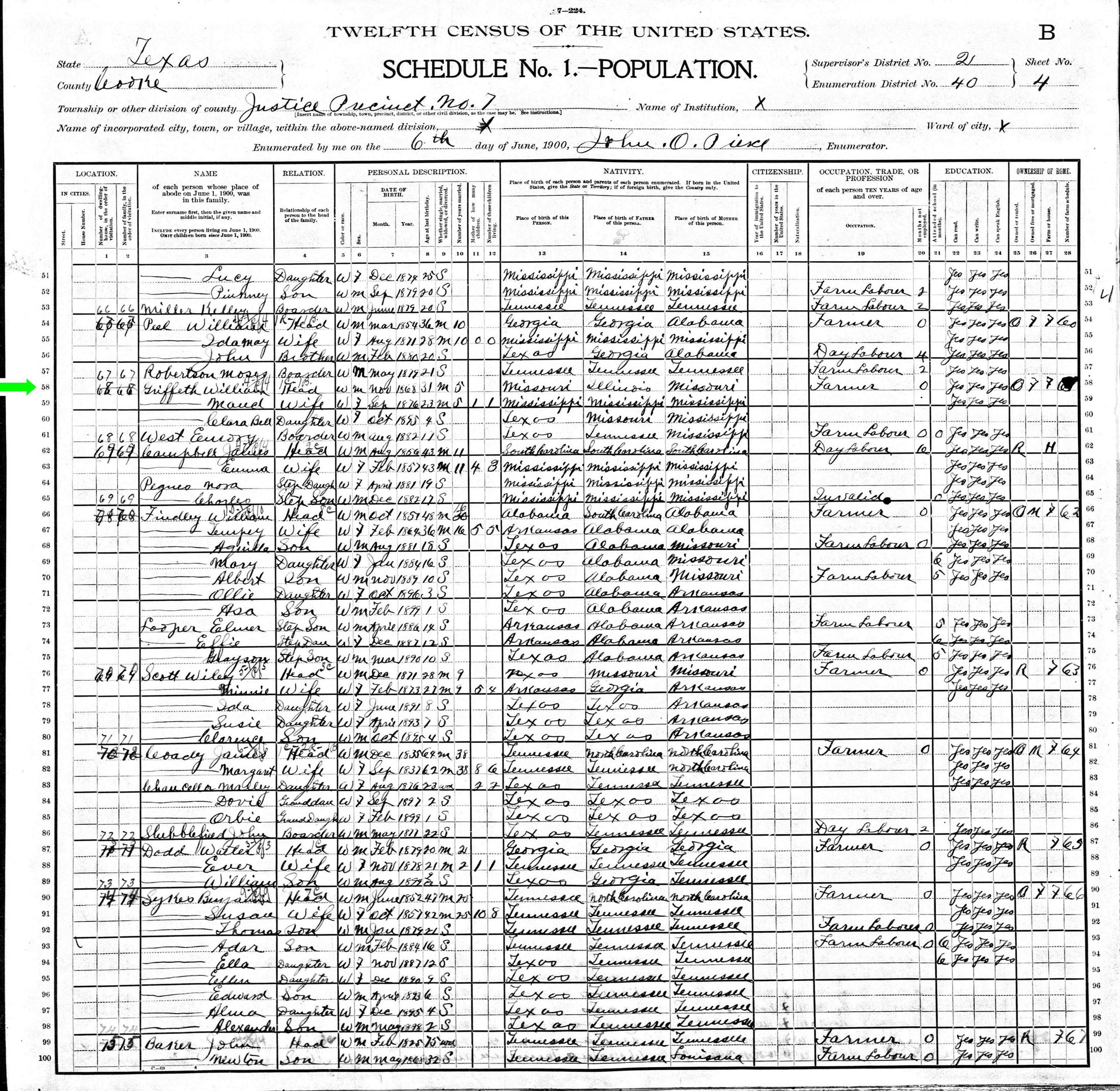 June 1900 in Cooke Co., Texas