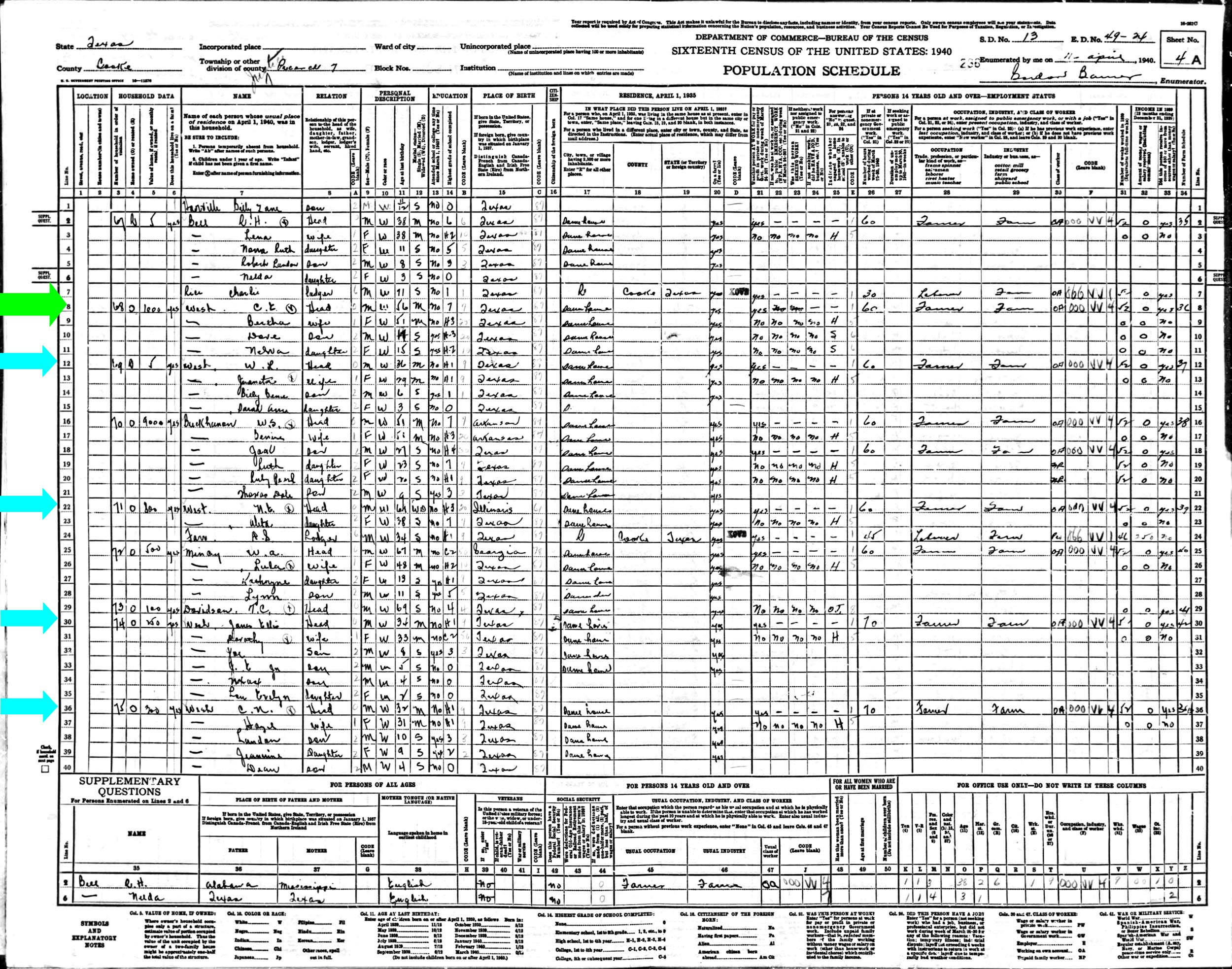 April 1940 in Cooke Co., Texas; Same house as April 1935