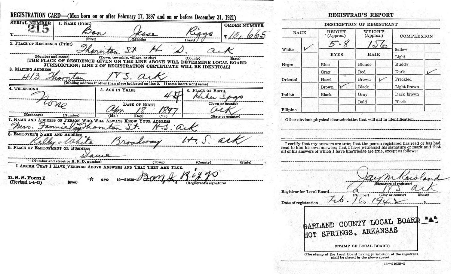 February 1942 in Hot Springs, Arkansas; 413 Thorton Street