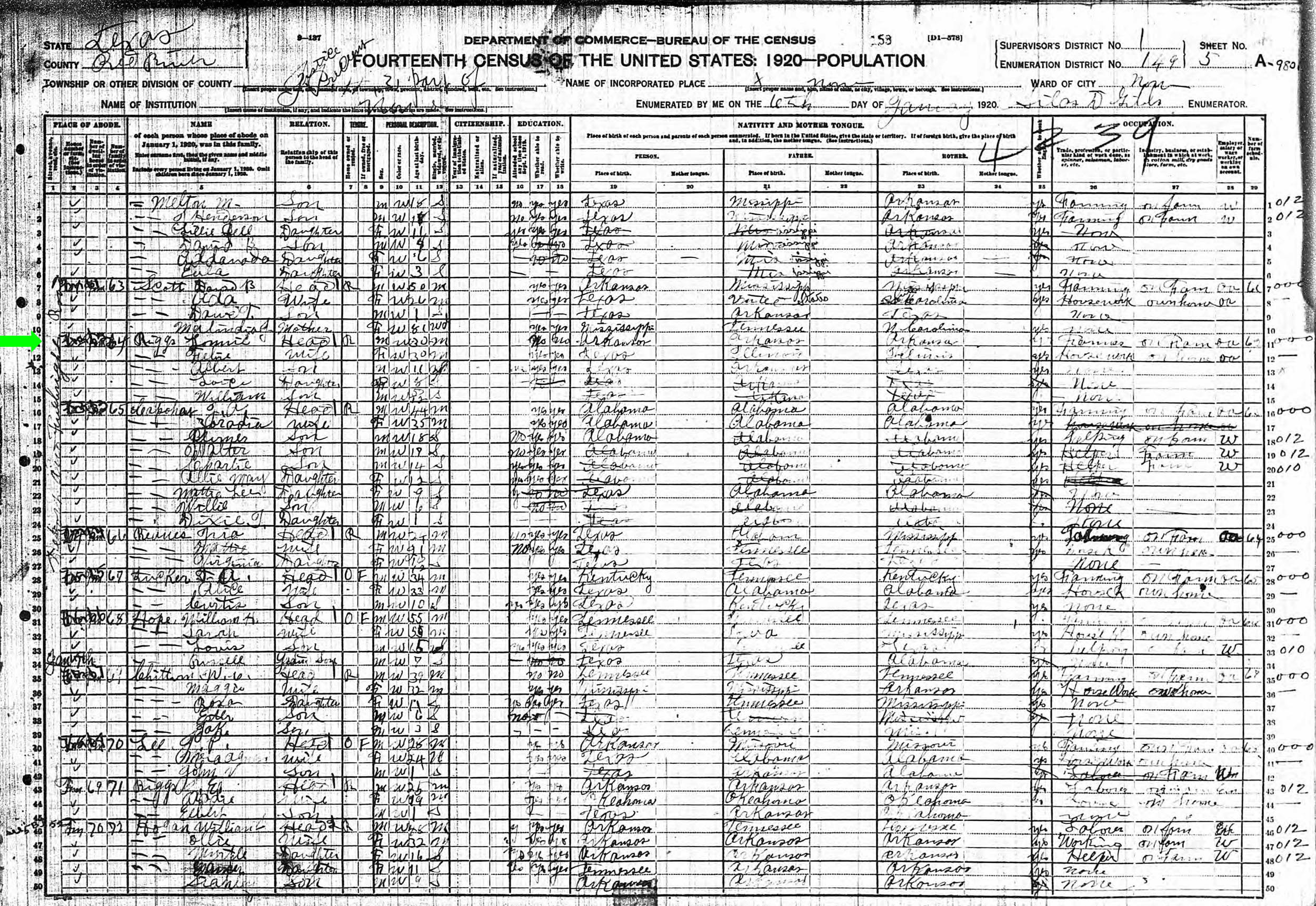 January 1920 in Red River Co., Texas