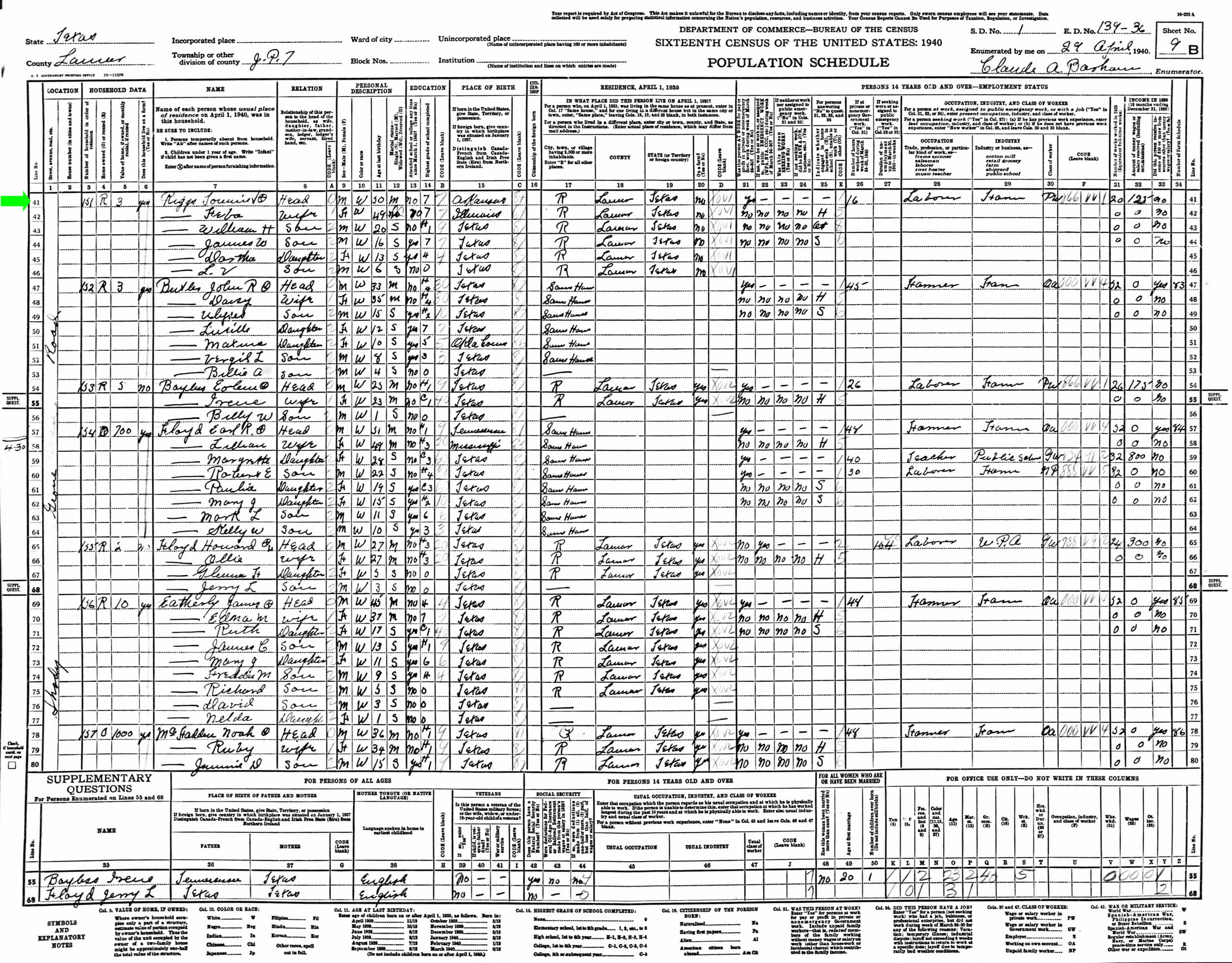 April 1940 in Lamar Co., Texas