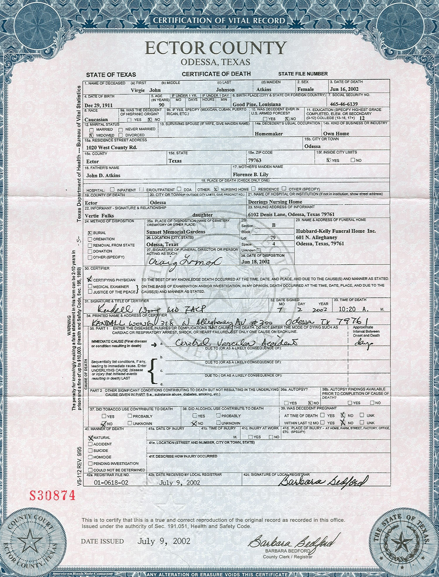 Details: 2002 - Texas, Ector, Odessa - Johnson, Virgie John
