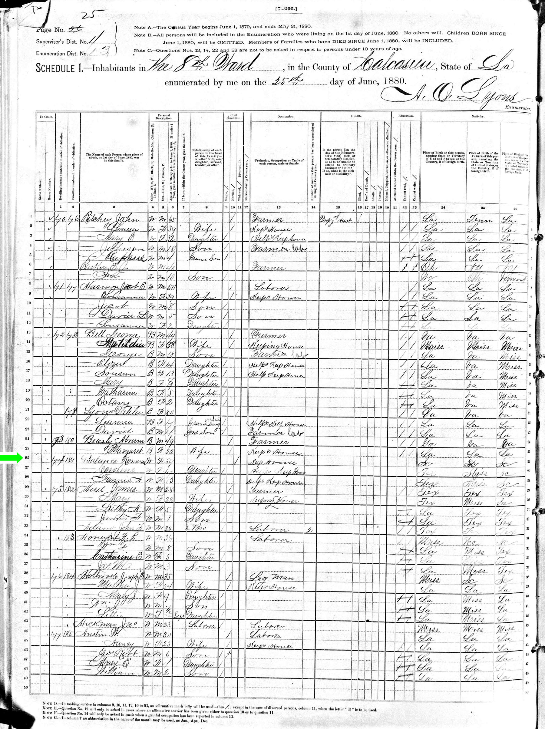 June 1880 in Calcasieu Co., Louisiana