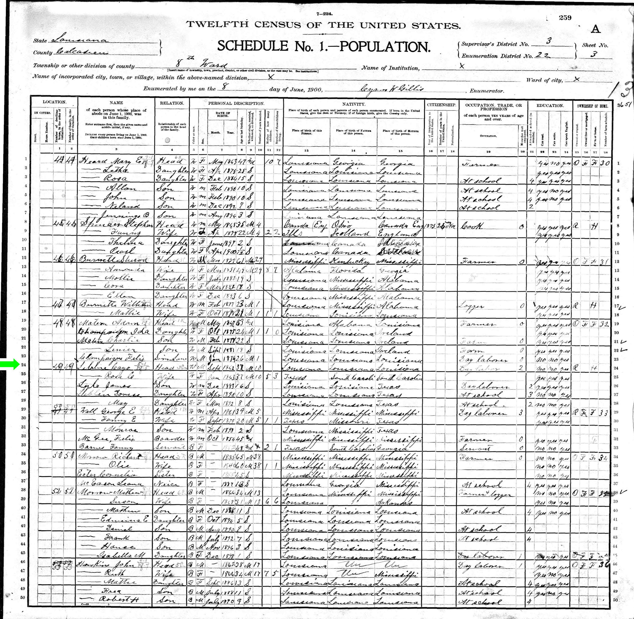 June 1900 in Calcasieu Co., Louisiana