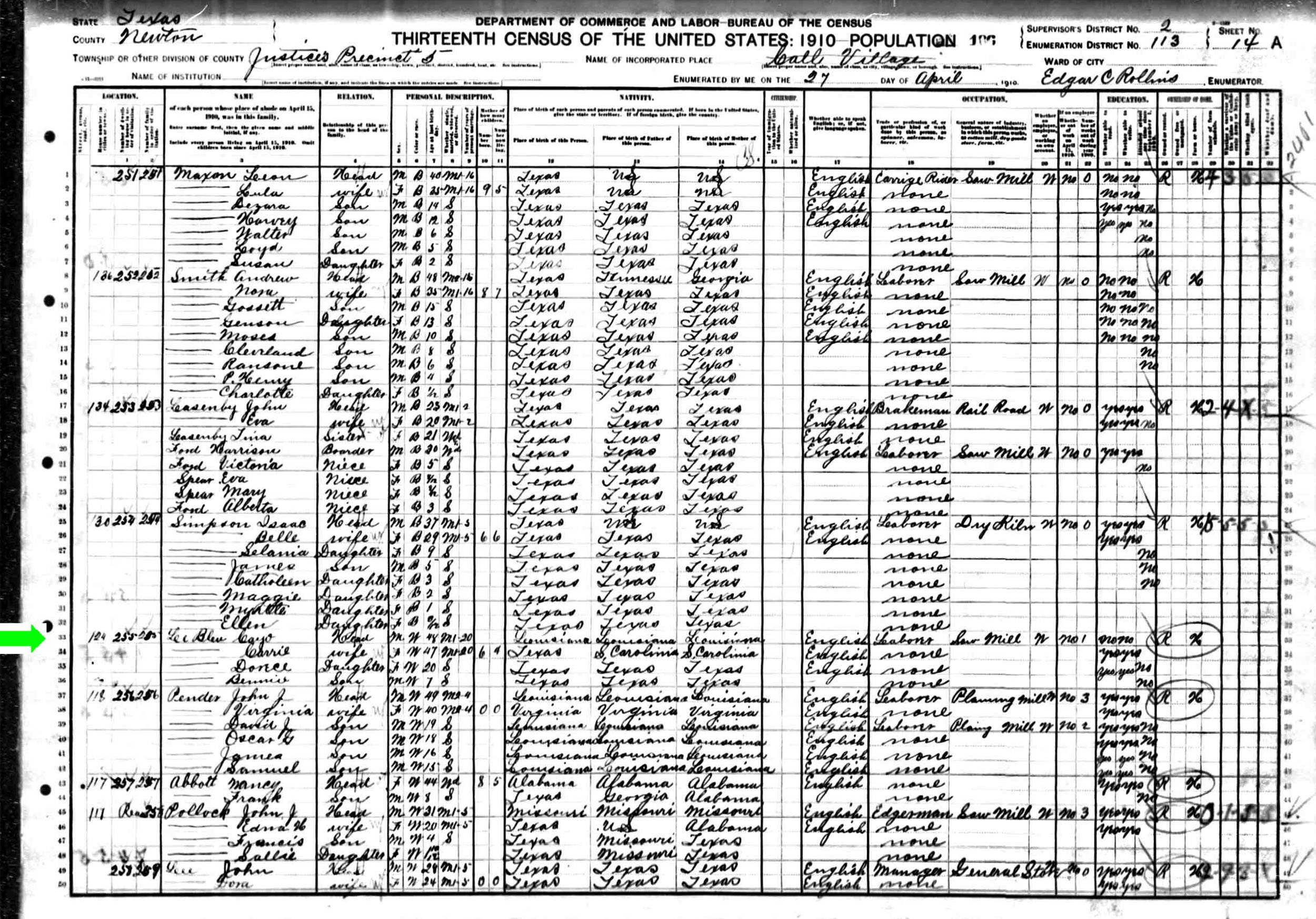 April 1910 in Newton Co., Texas