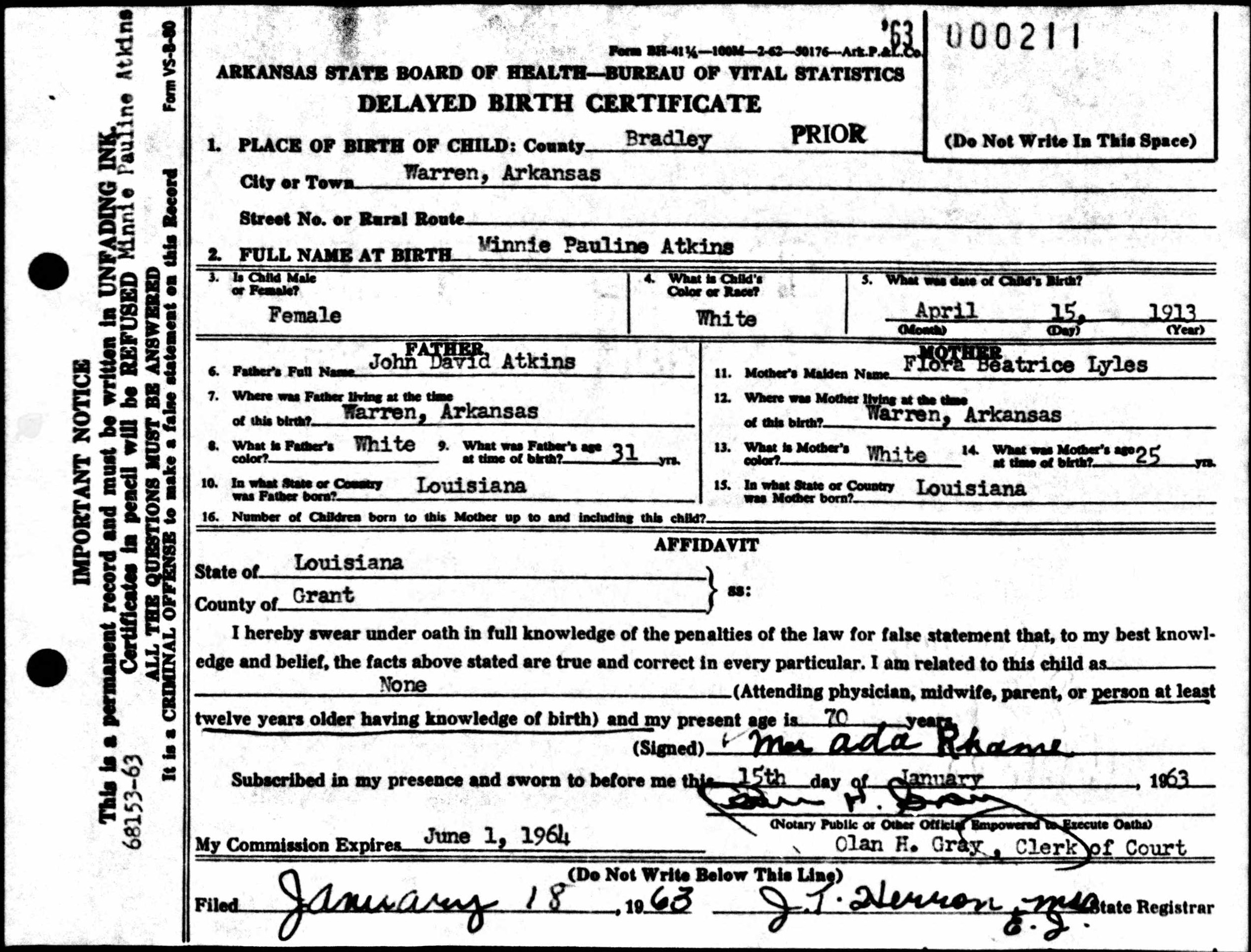 April 1913 in Warren, Arkansas