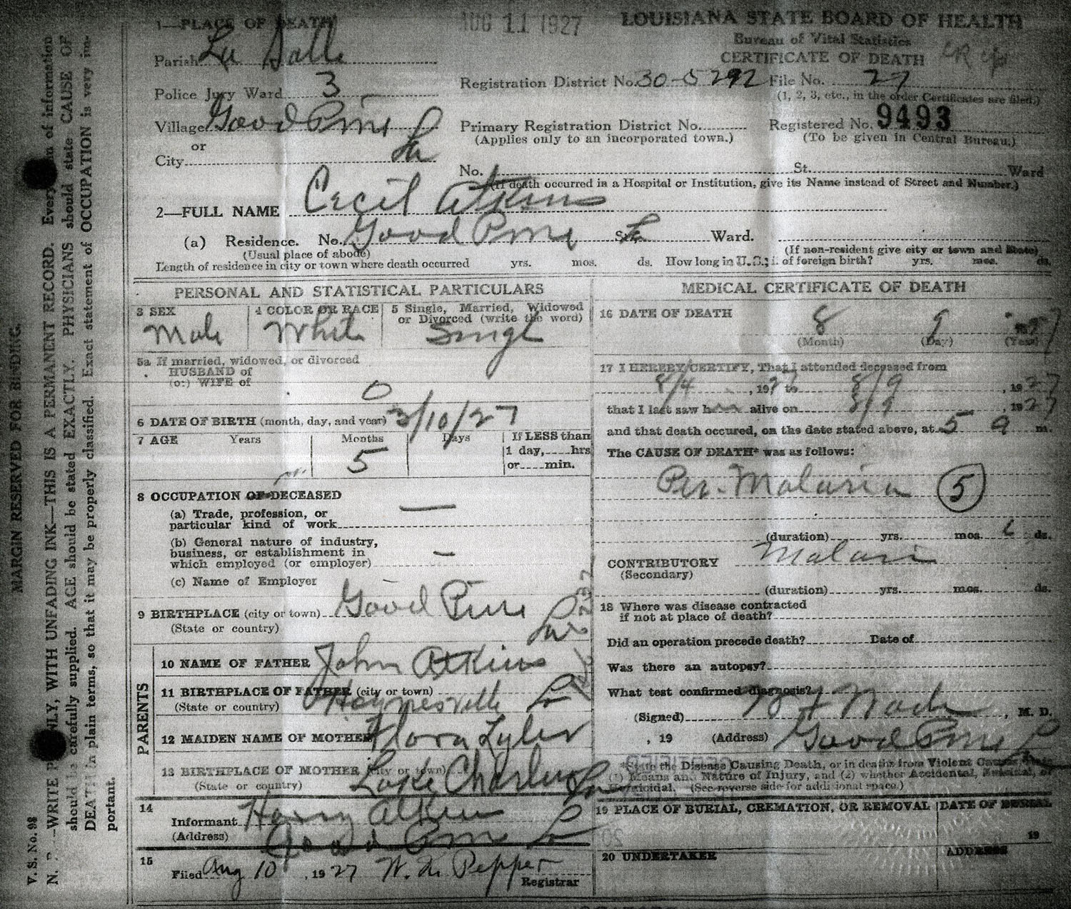 September 11, 1903 in Webster Co., Louisiana
