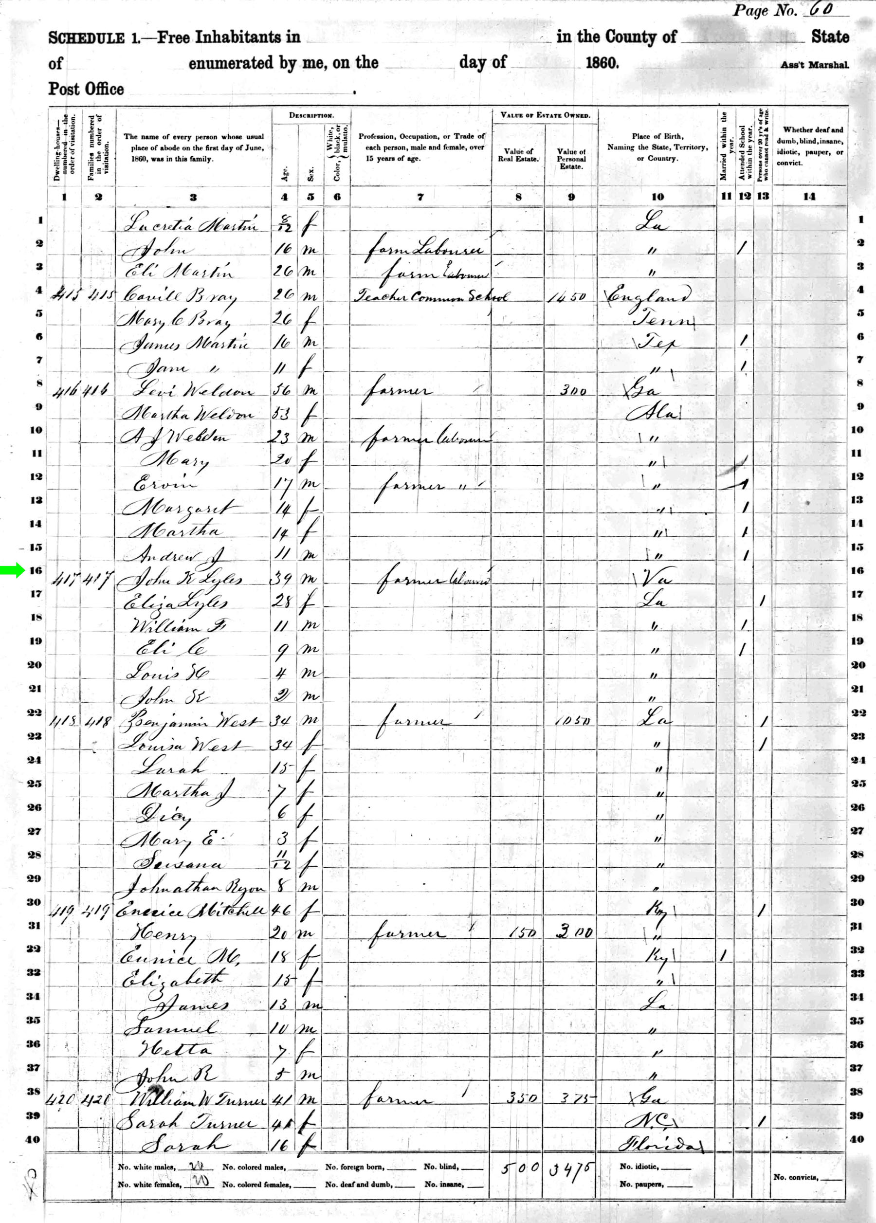 July 1860; Farm Laborer