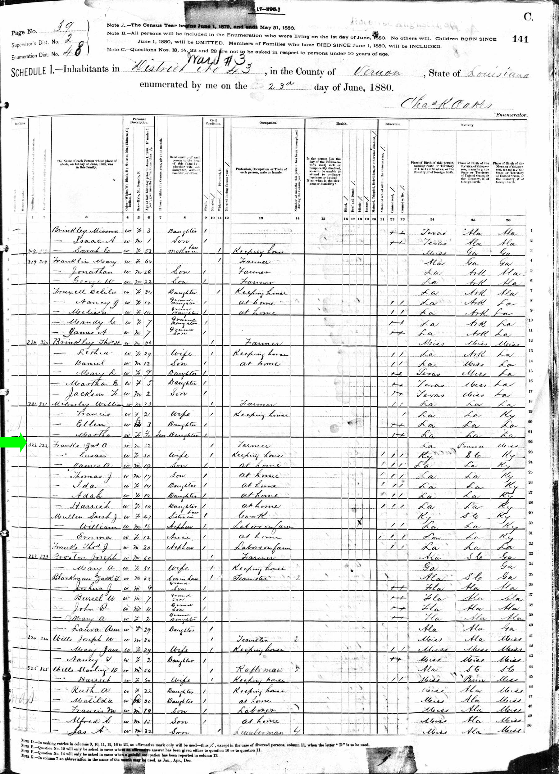 June 1880 in Vernon Co., Louisiana