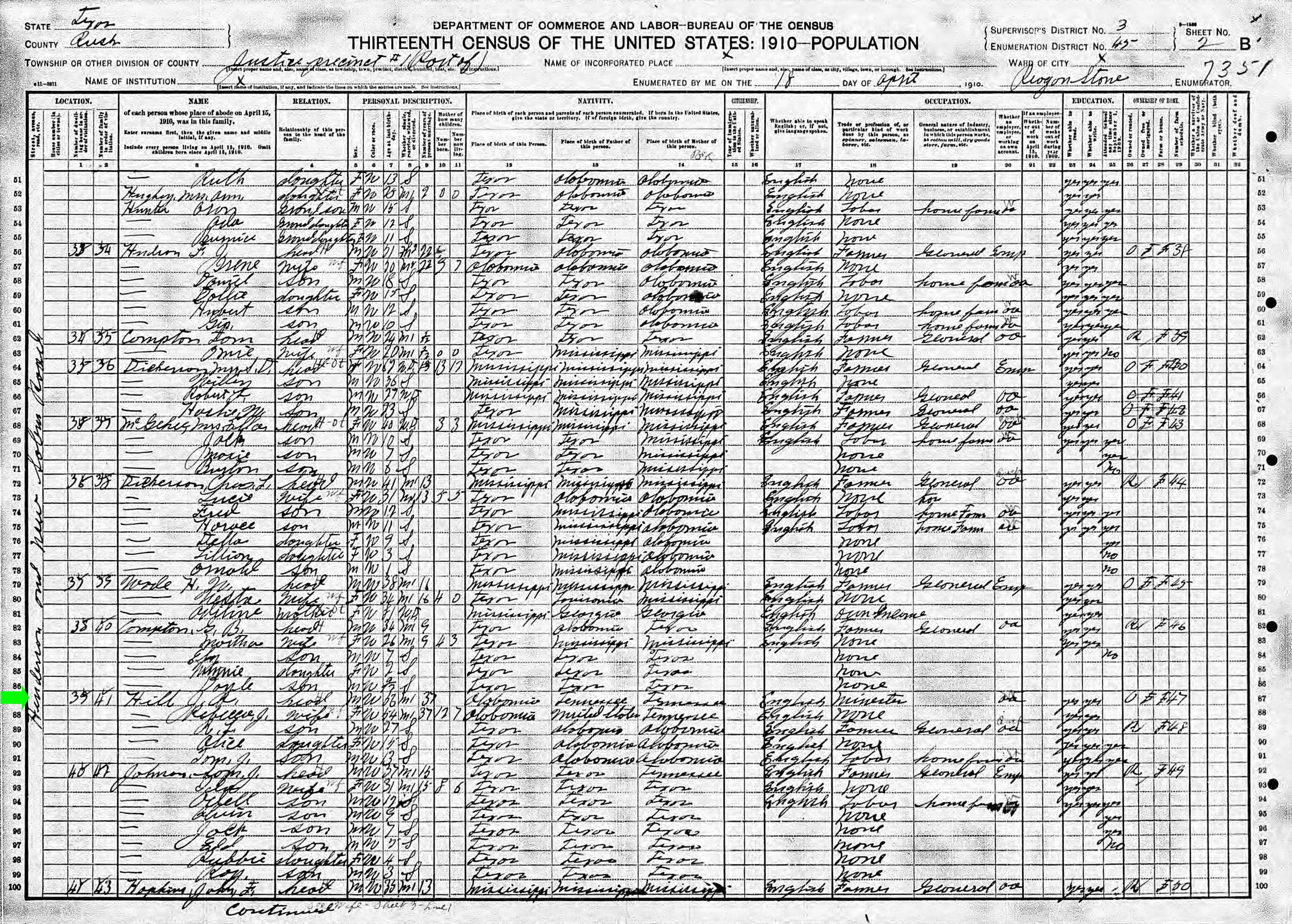April 1910 in Rusk Co., Texas