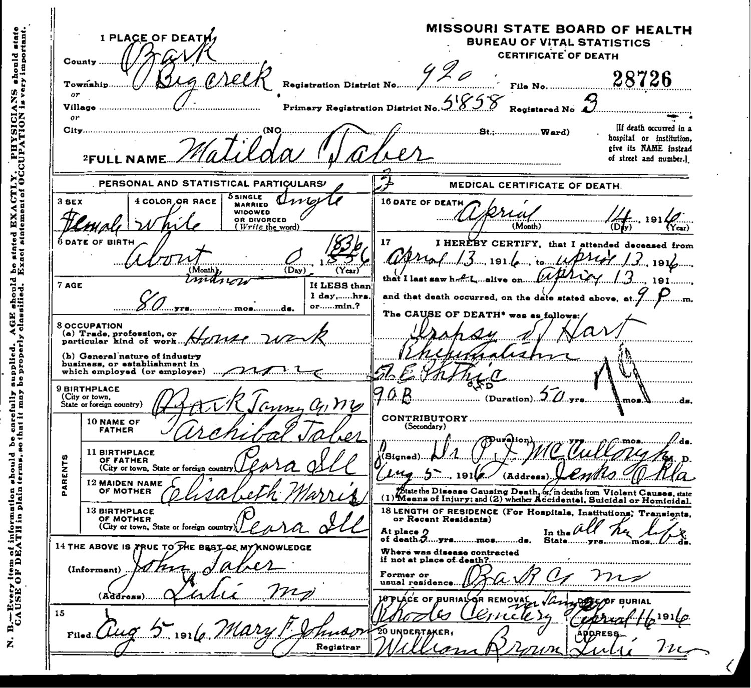 August 1860 in Big Creek, Missouri