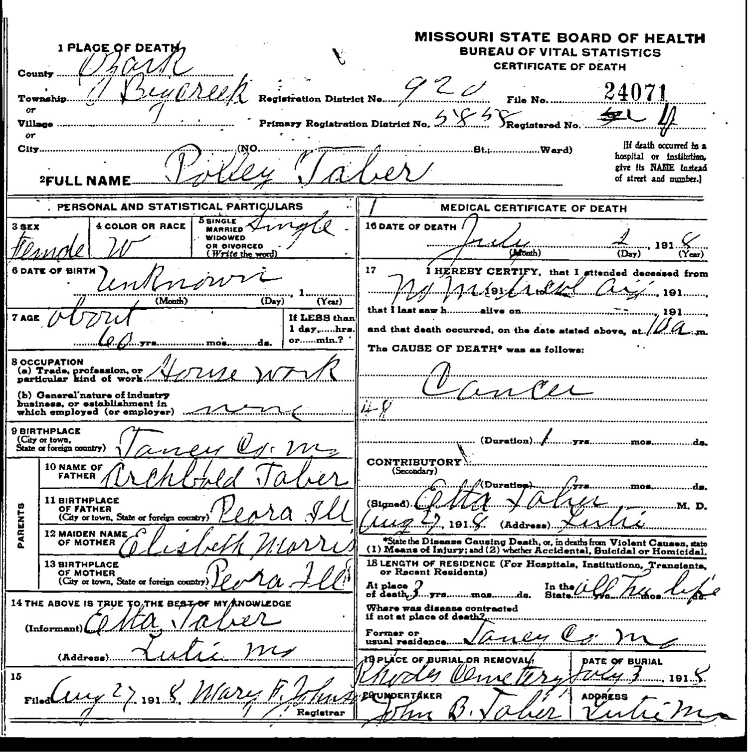 in Protem, Missouri; Rhodes Cemetery