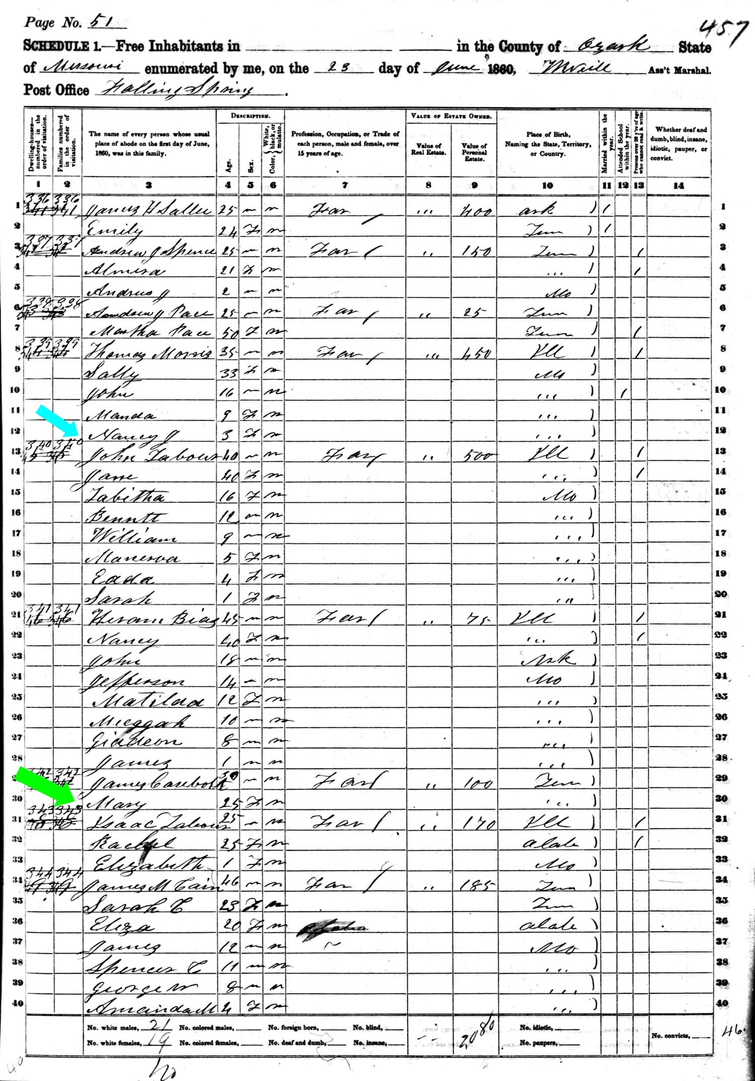 June 1860 in Ozark Co., Missouri