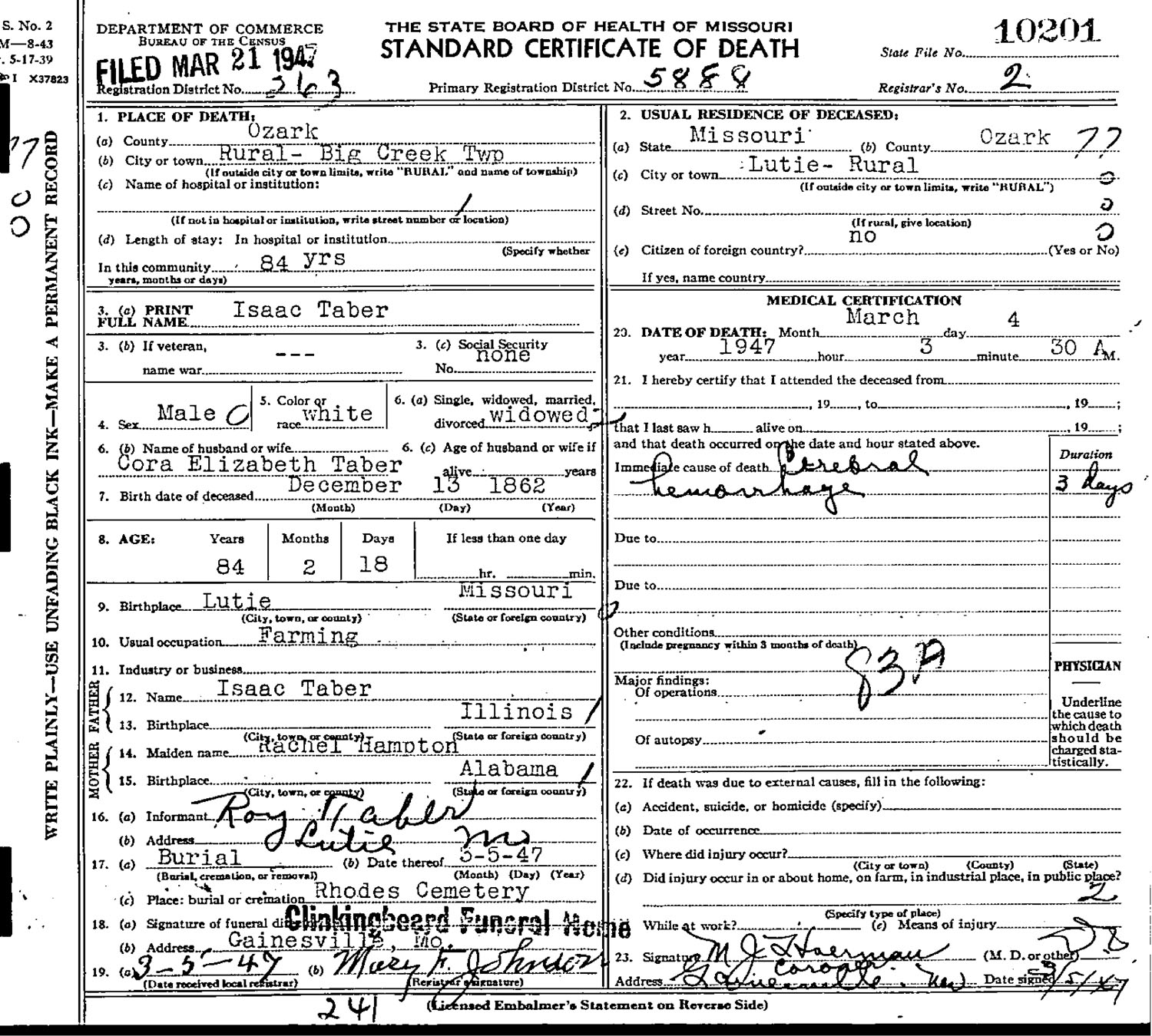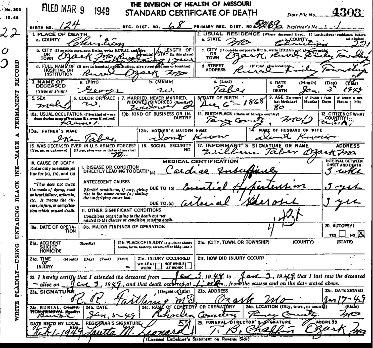 1917 - Taney Co., Missouri