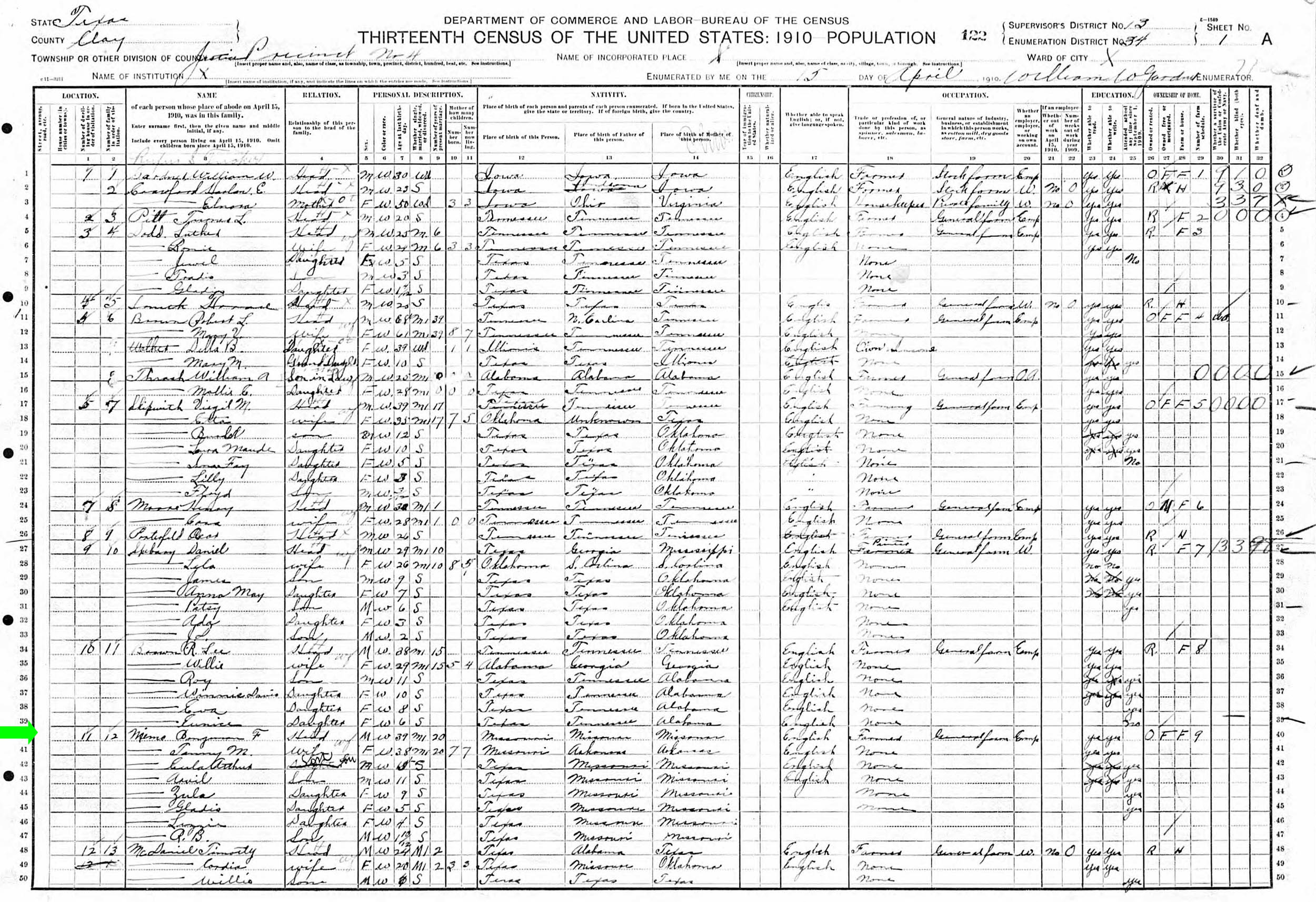 April 1910 in Clay Co., Texas