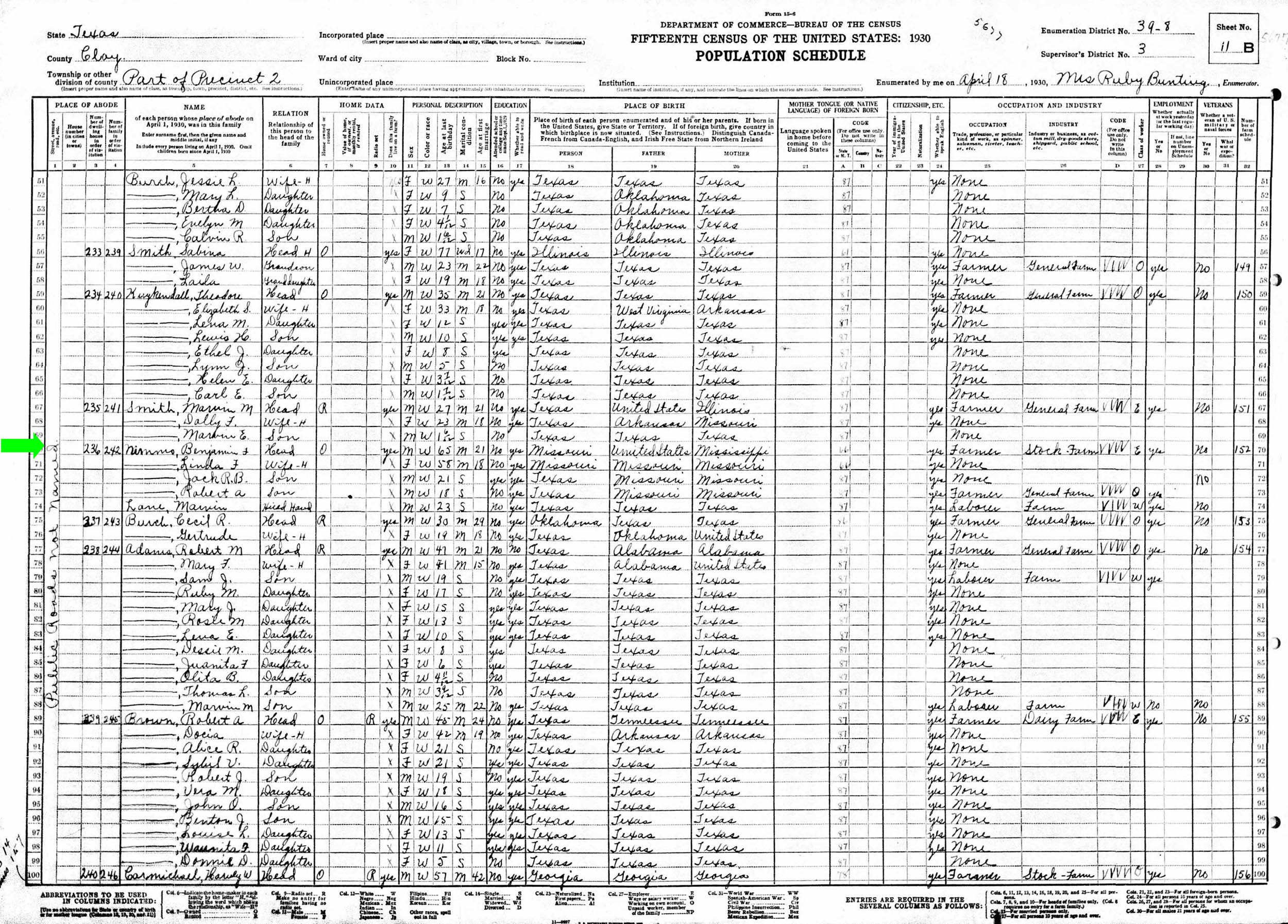 April 1930 in Clay Co., Texas