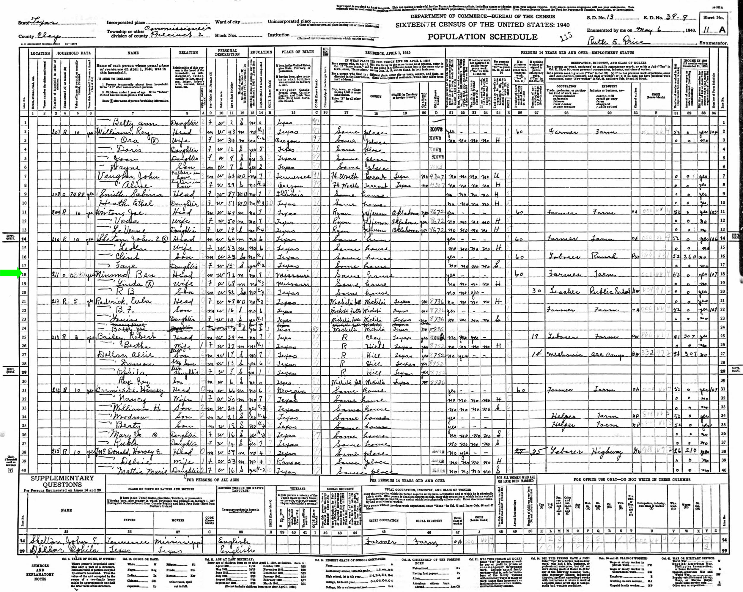 May 1940 in Clay Co., Texas; Same house as April 1935