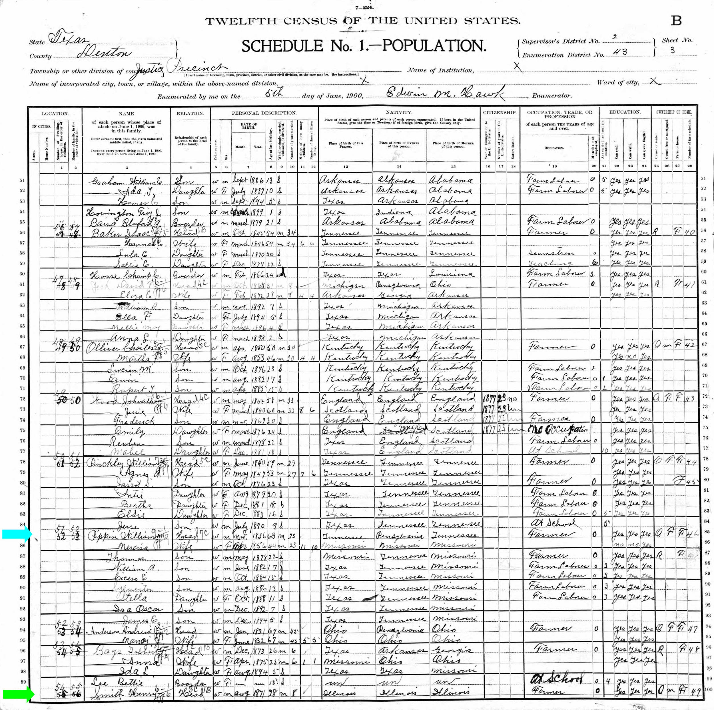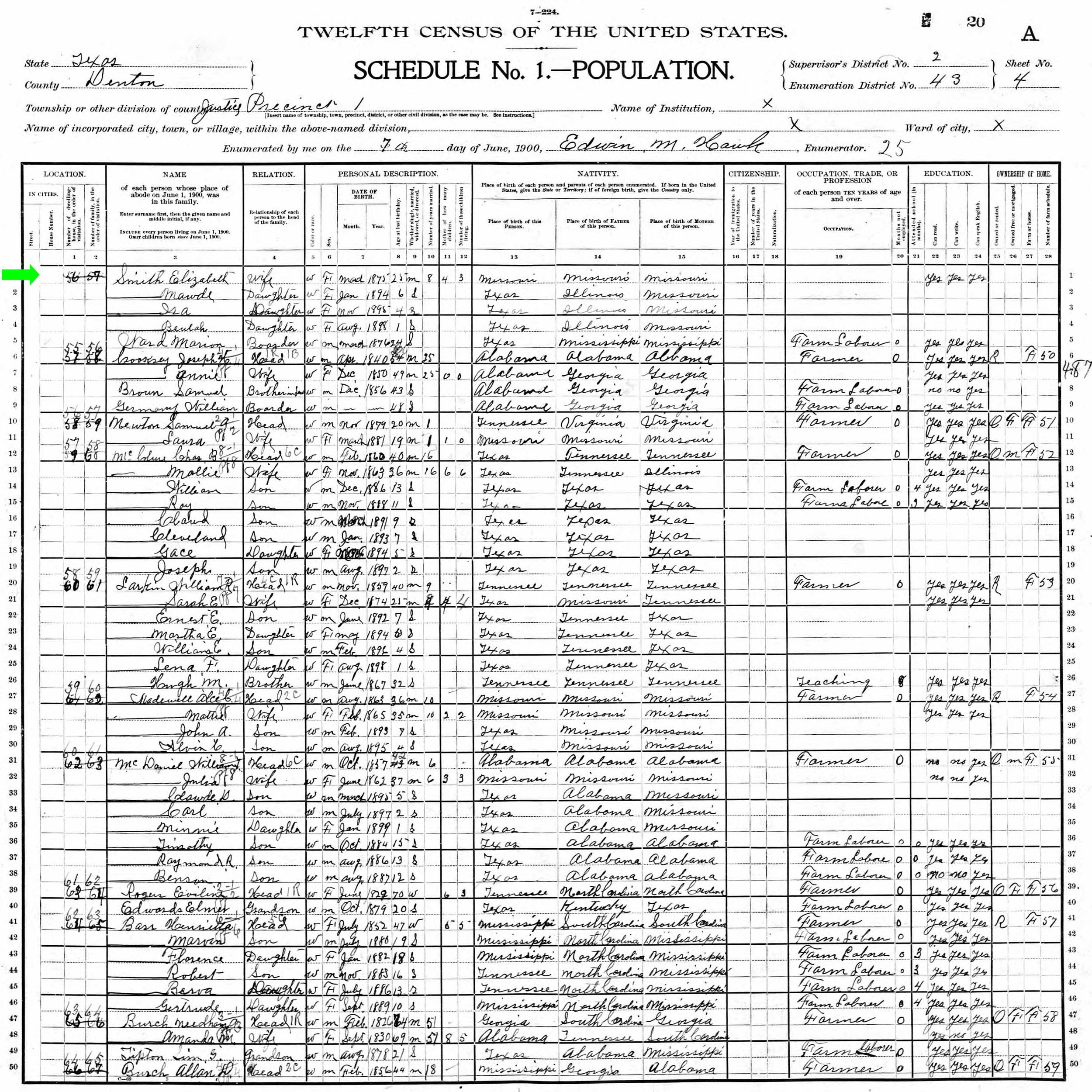 June 1900 in Denton Co., Texas