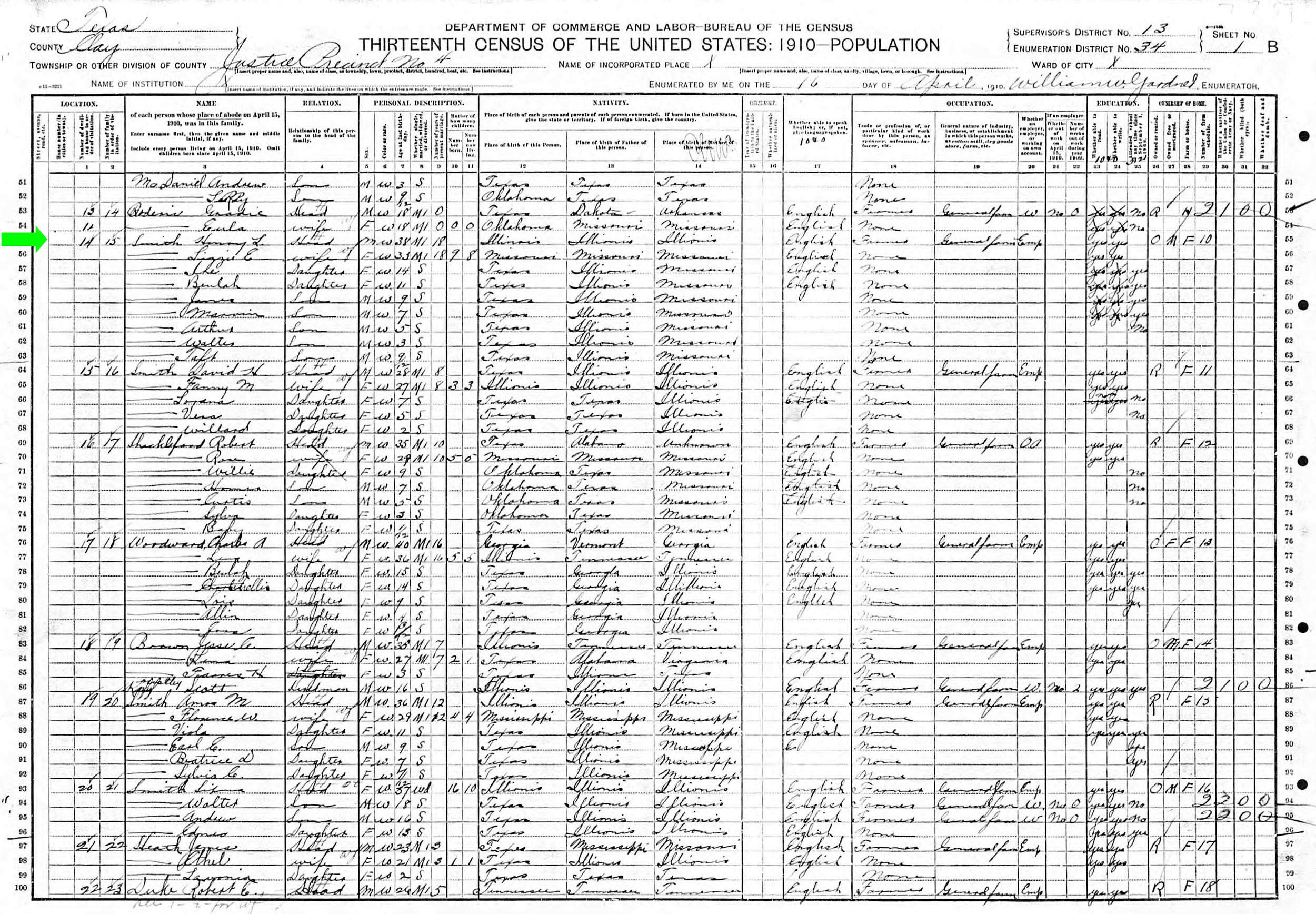 April 1910 in Clay Co., Texas