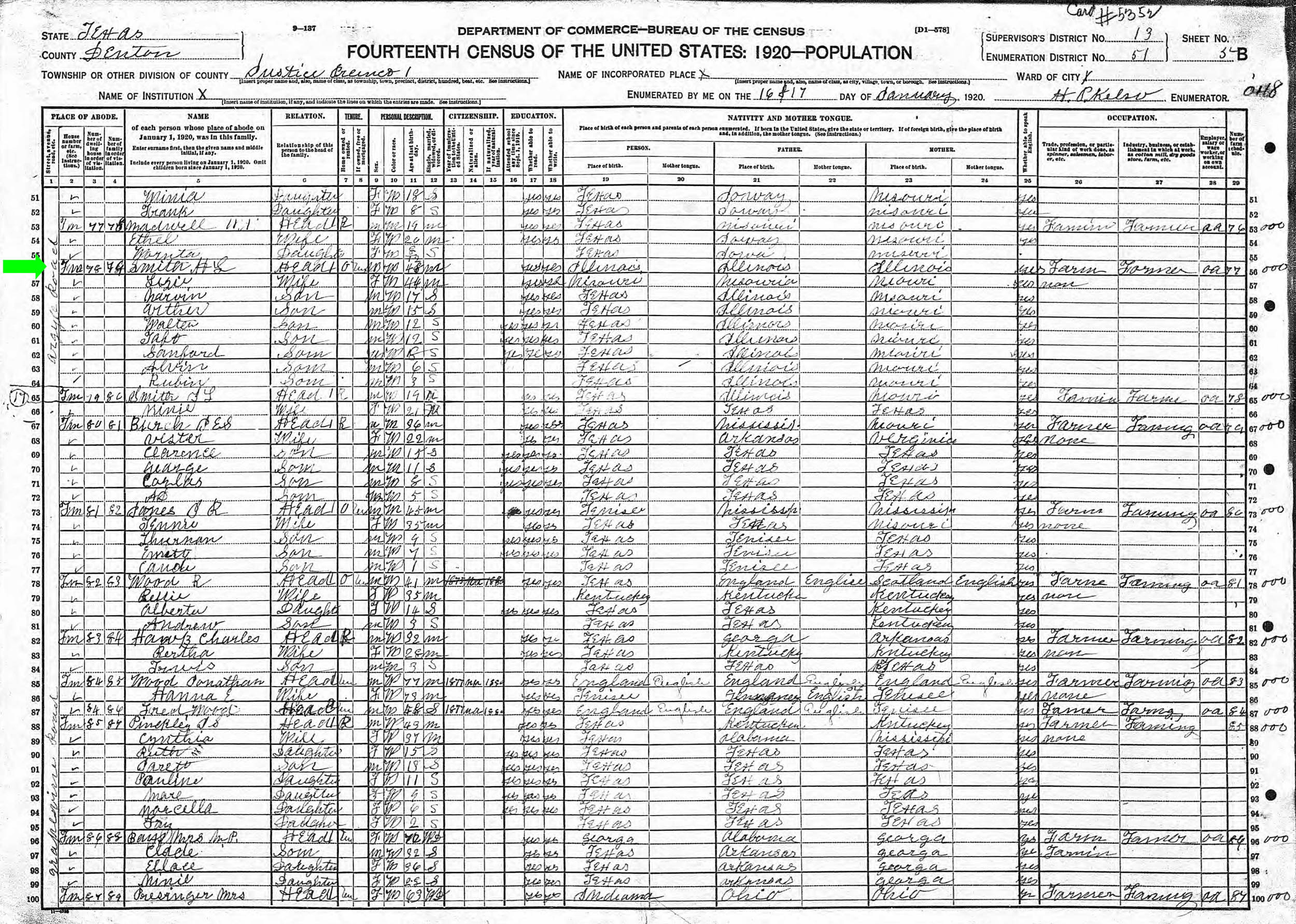 January 1920 in Denton Co., Texas