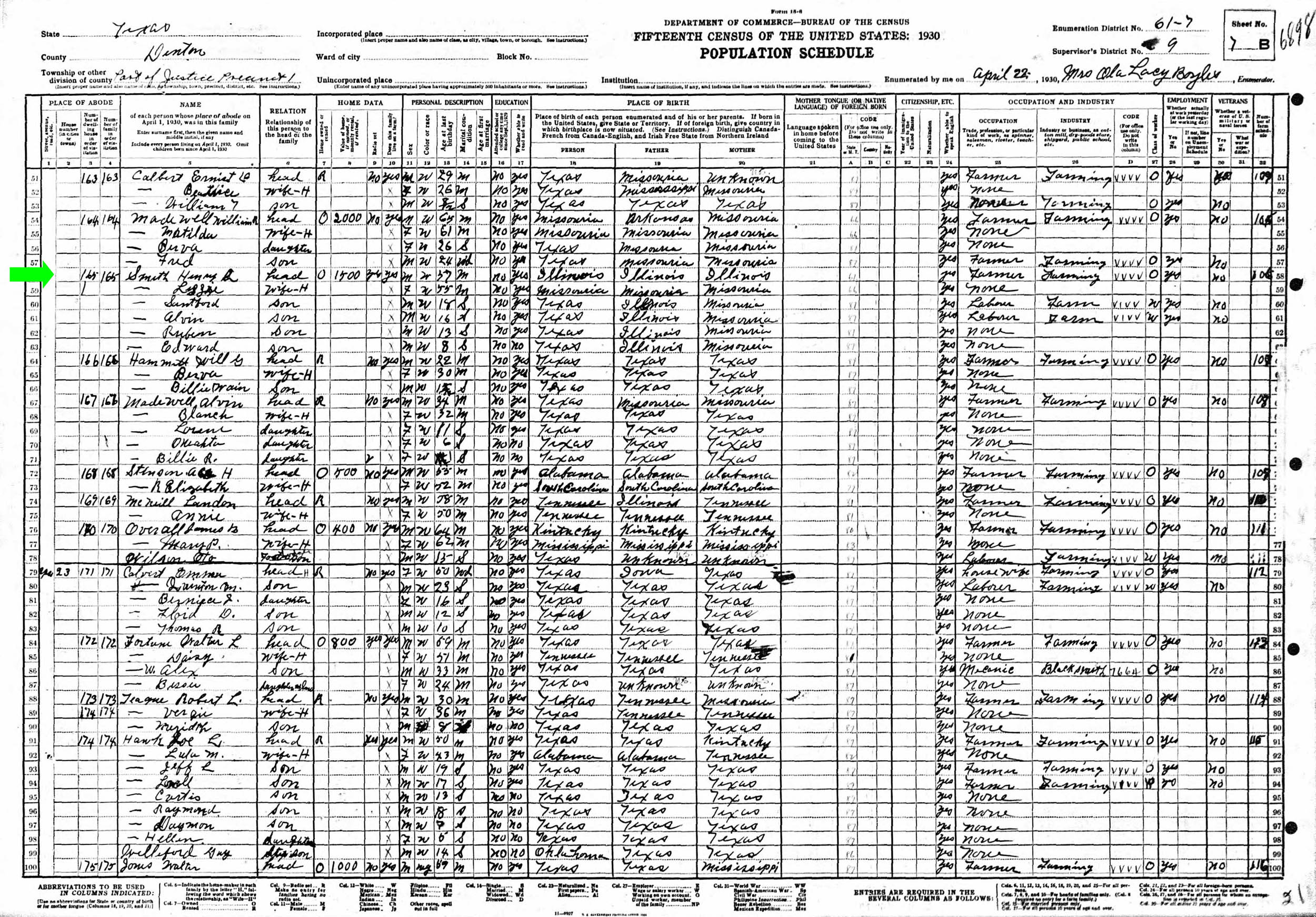 April 1930 in Denton Co., Texas