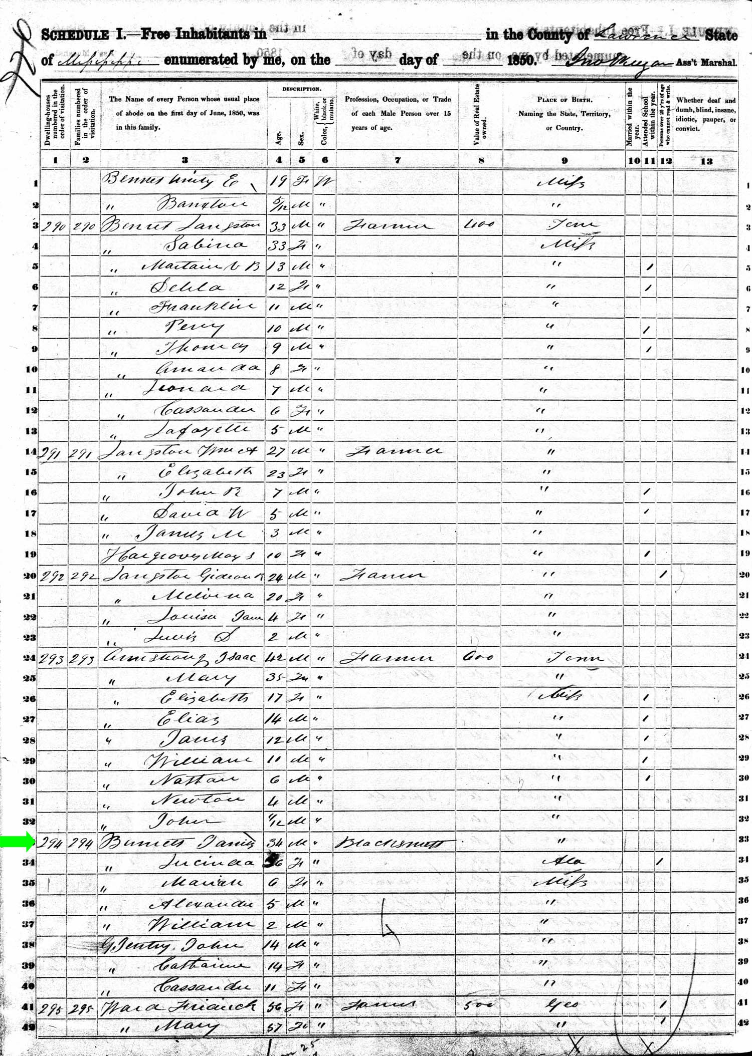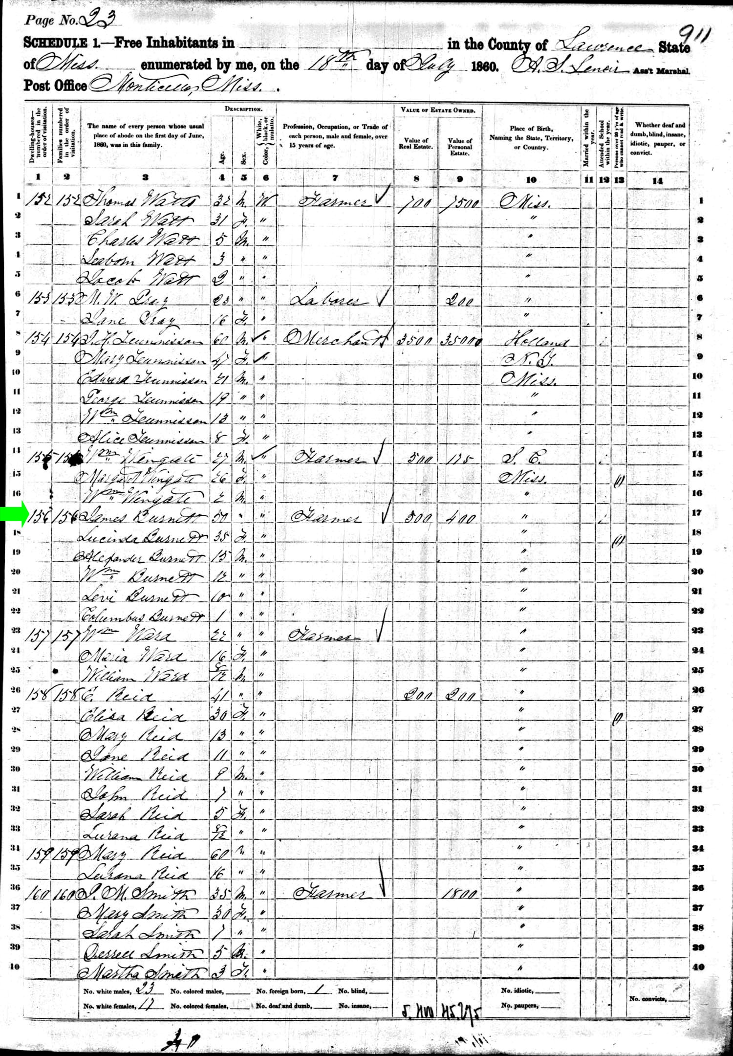 July 1860 in Lawrence Co., Mississippi