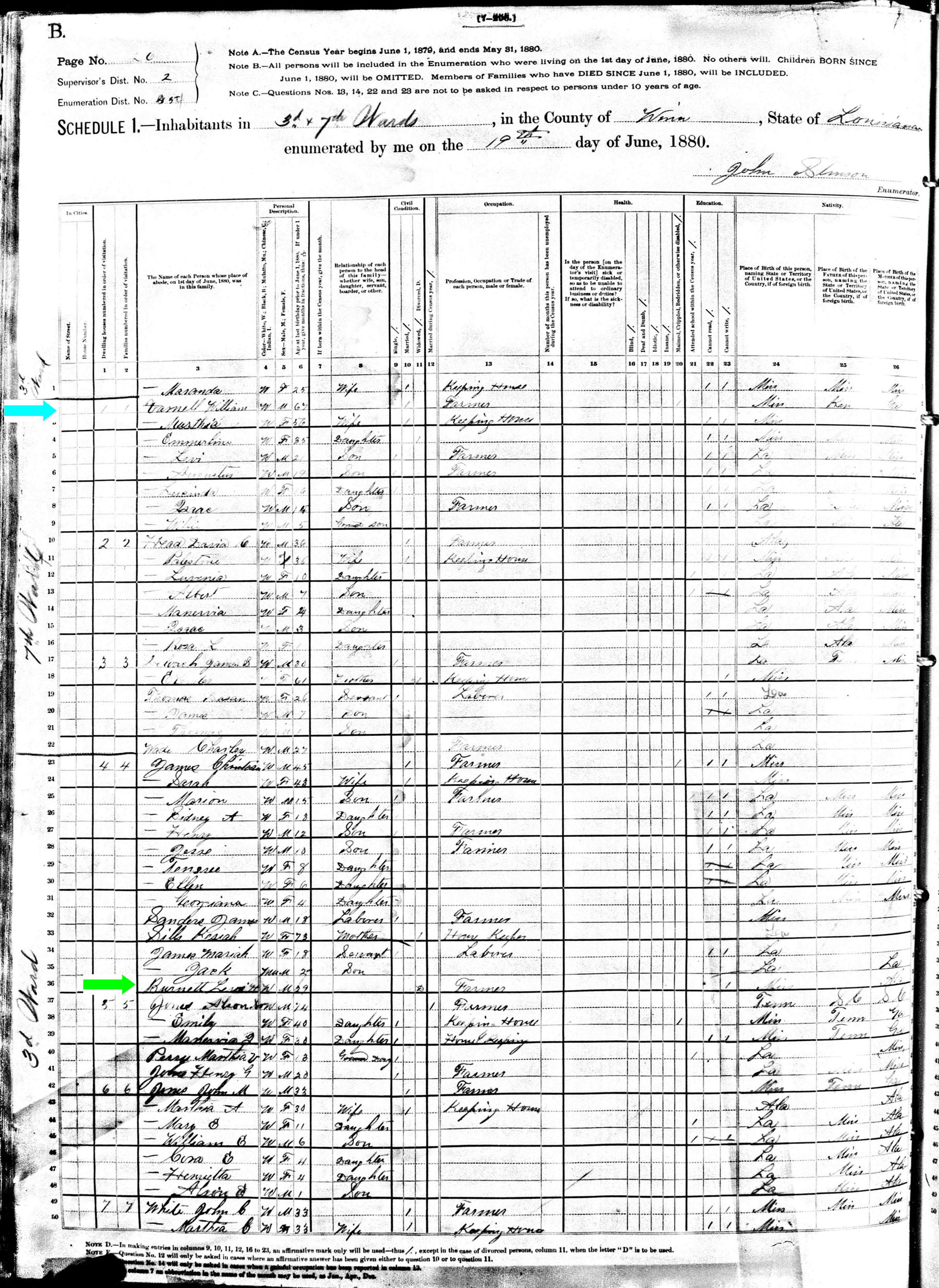 June 1880 in Winn Co., Louisiana