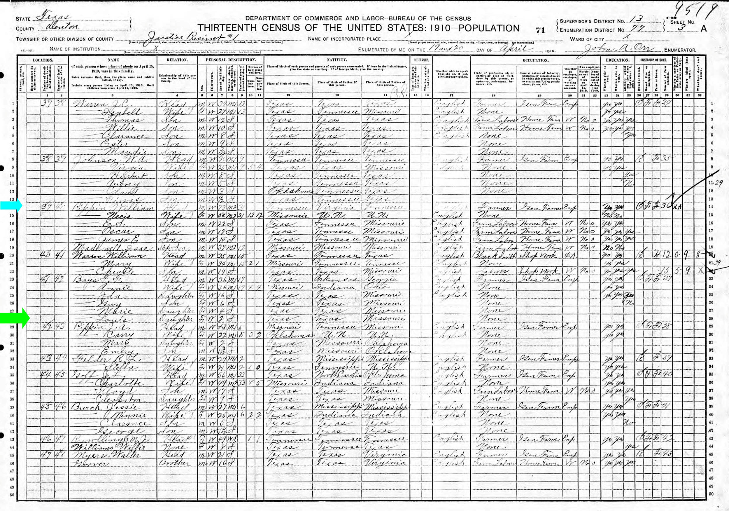 April 1910 in Denton Co., Texas