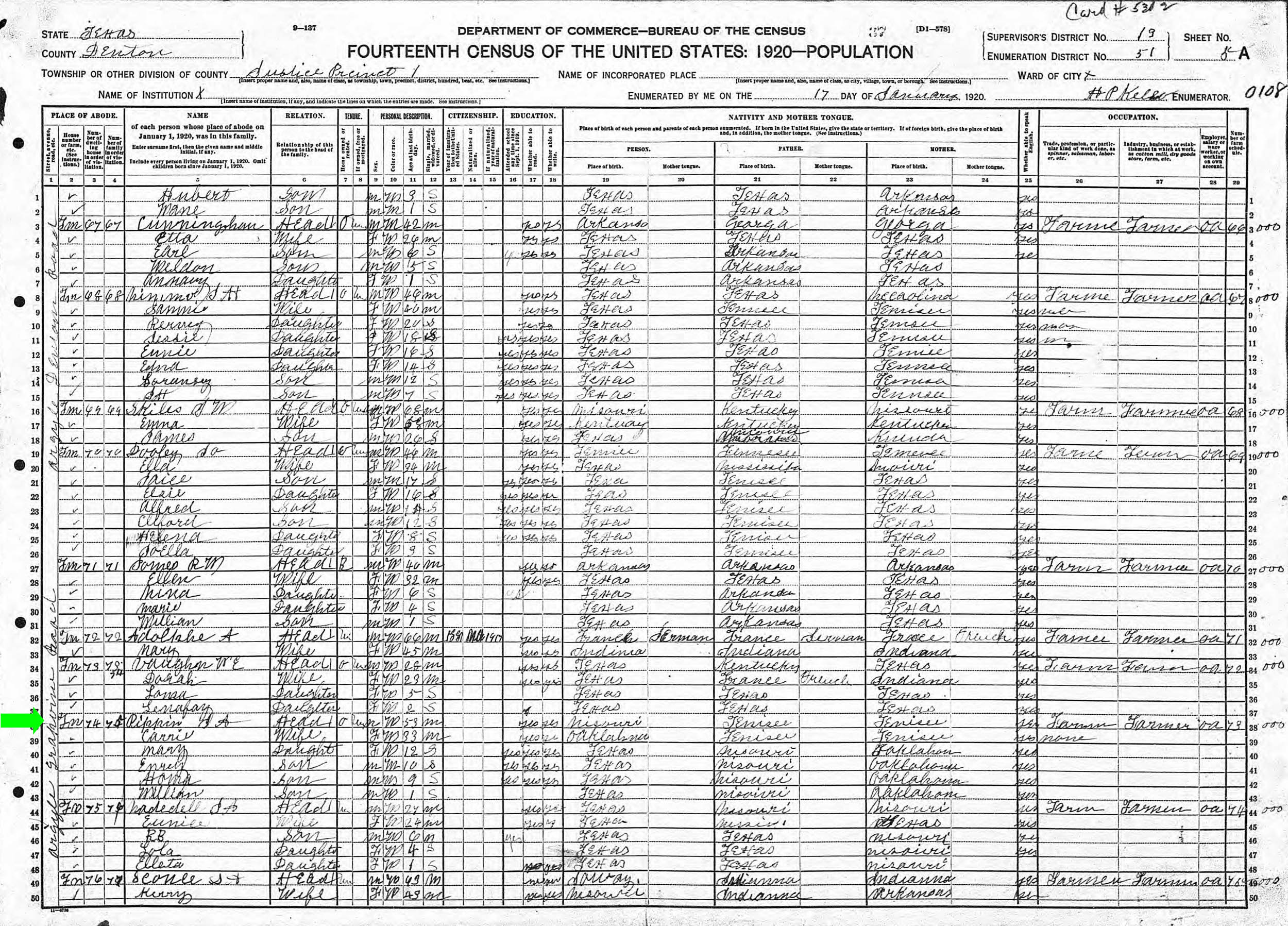 January 1920 in Denton Co., Texas