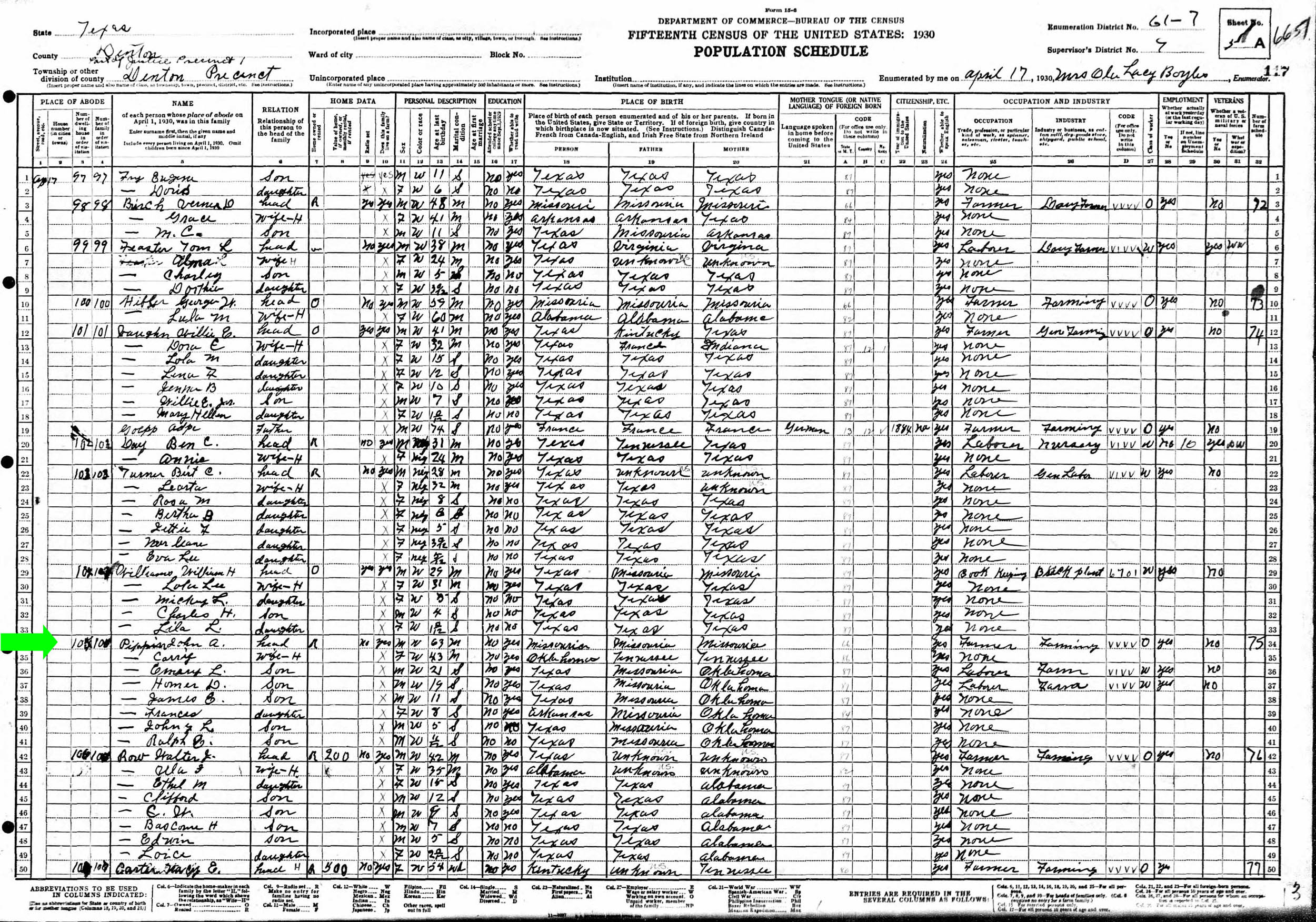 April 1930 in Denton Co., Texas
