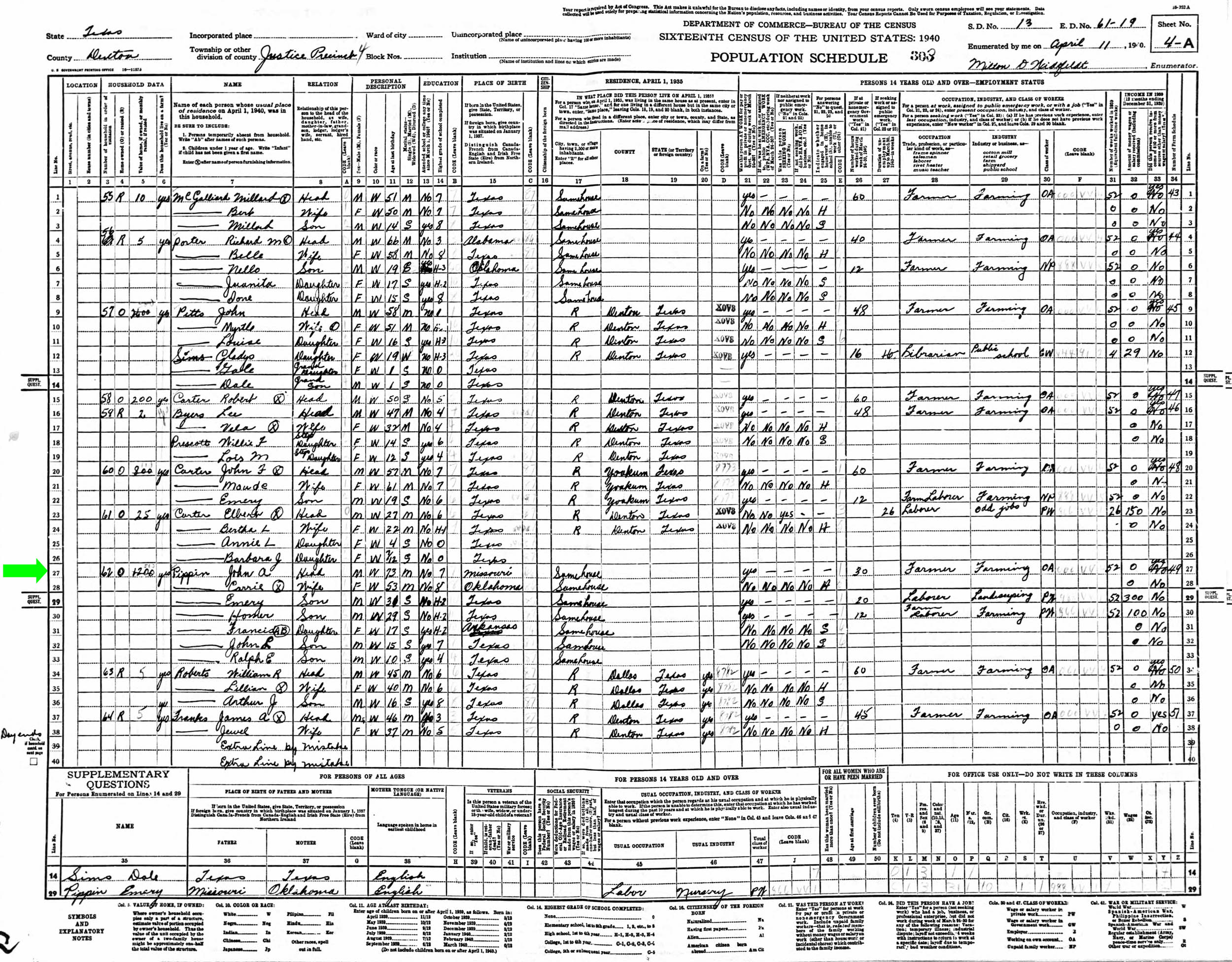 April 1940 in Denton Co., Texas; Same house as April 1935
