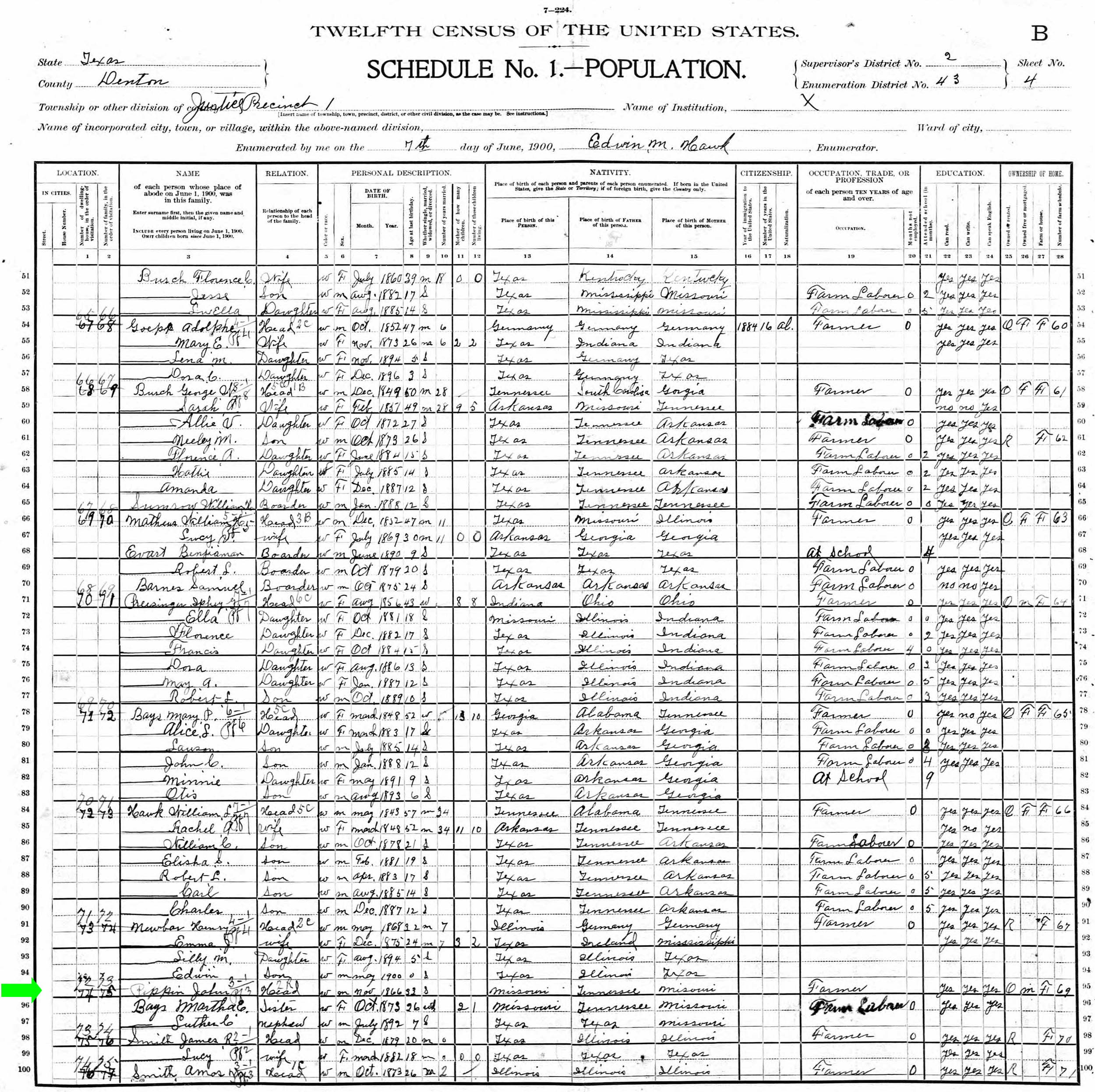 June 1900 in Denton Co., Texas